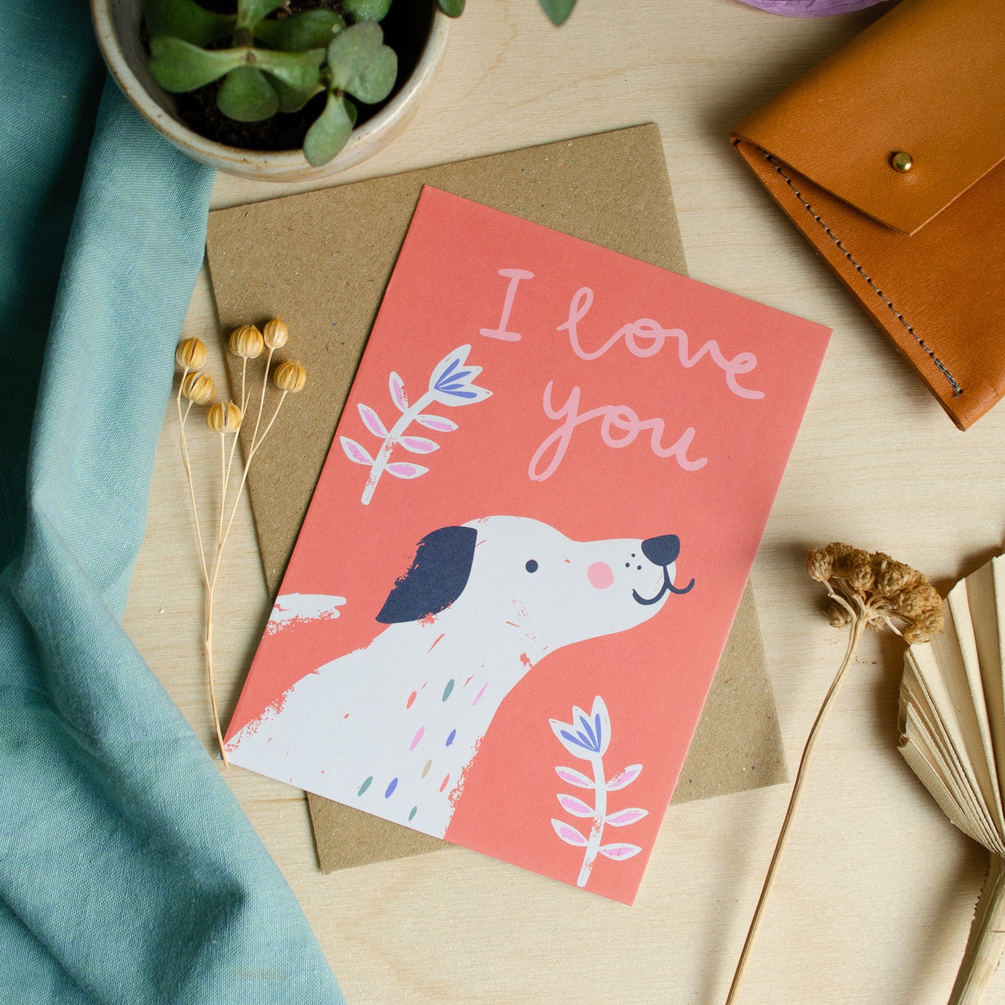 A cute puppy I love you card, just the card for any dog mum or dog lover. Perfect for valentines, anniversaries or just because!