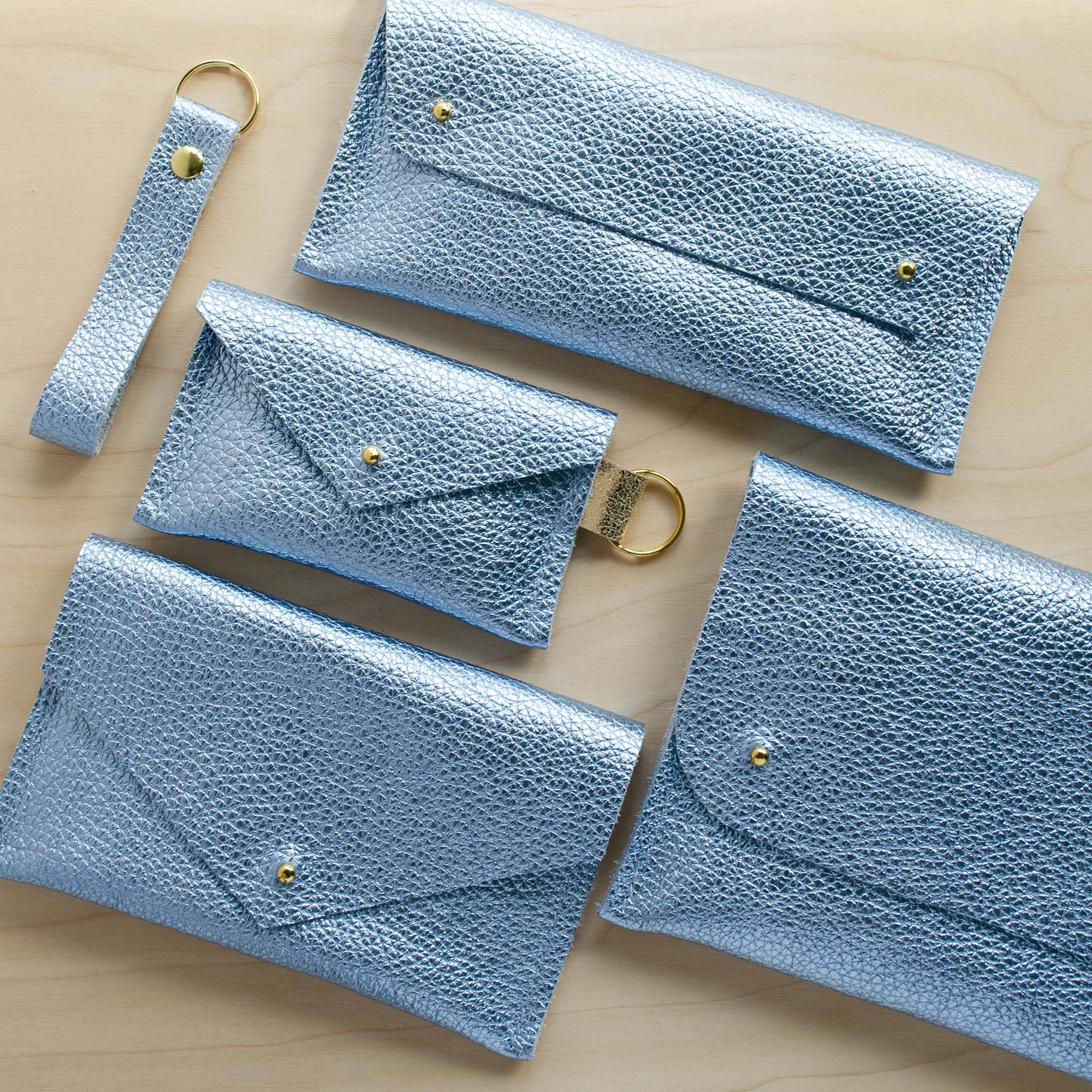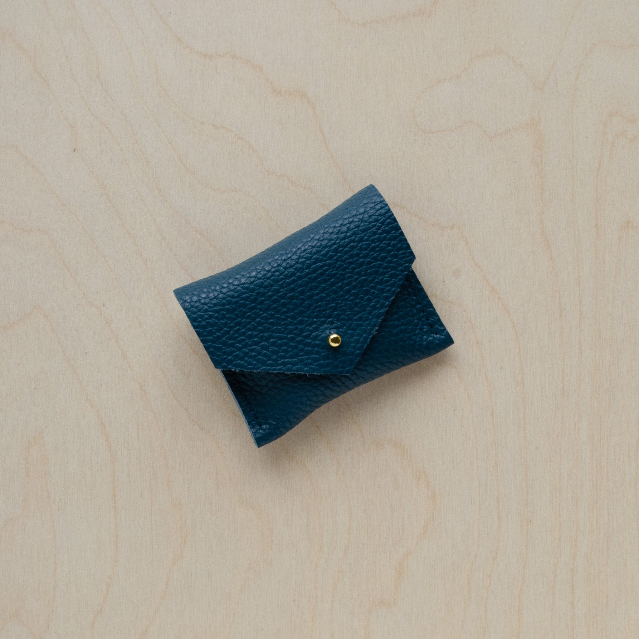 Each leather pouch is carefully crafted using high quality Italian leather which we are proud to source locally from a supplier here in England. Each one is finished with a minimalist stud to fasten and keep your notions safe.