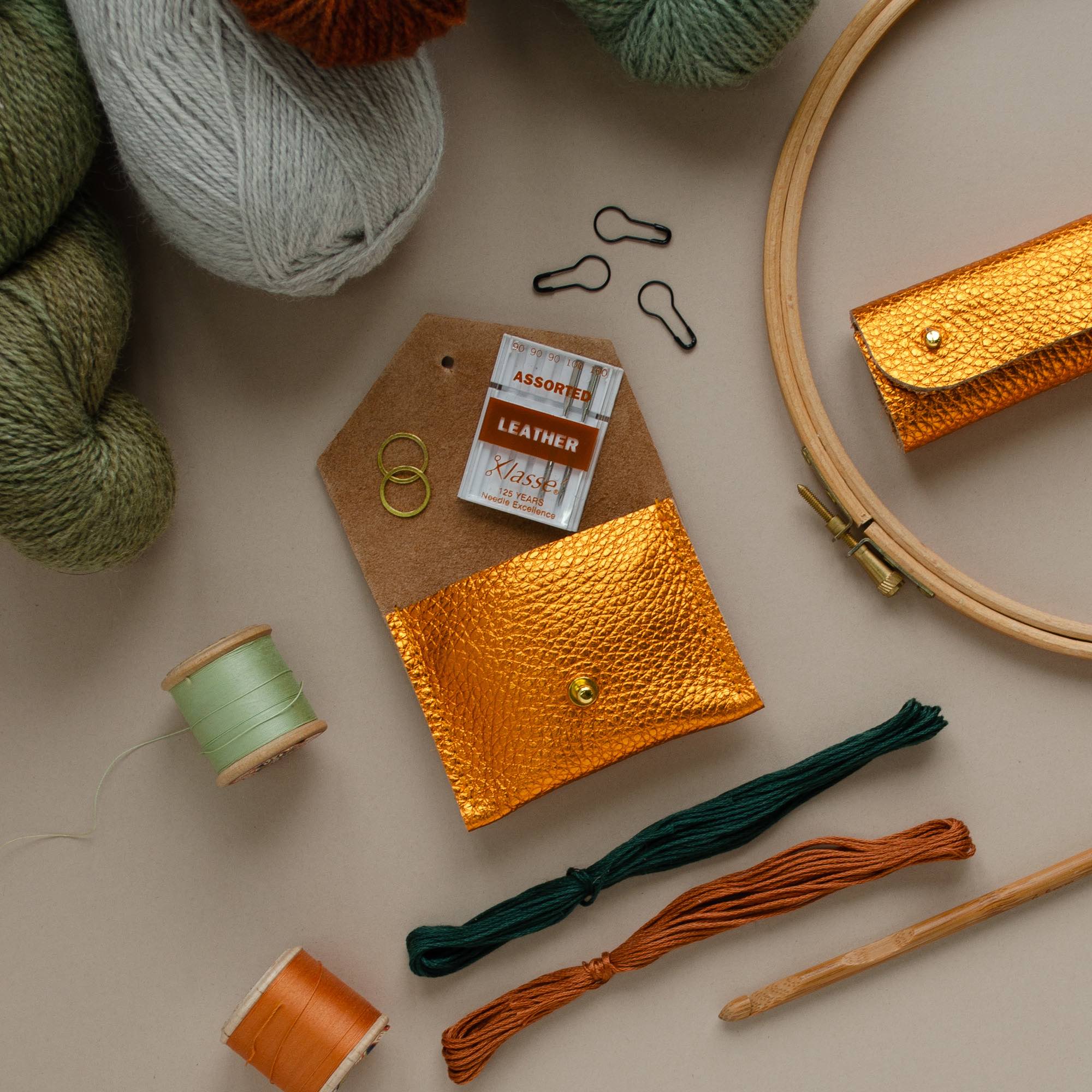 This gorgeously soft leather pouch is exactly what you need to contain all your craft supplies, but particularly those extra fiddly items. From stitch markers and needle tips to safety pins, thimbles and threaders, our stitch marker pouch is great for storing them all.