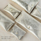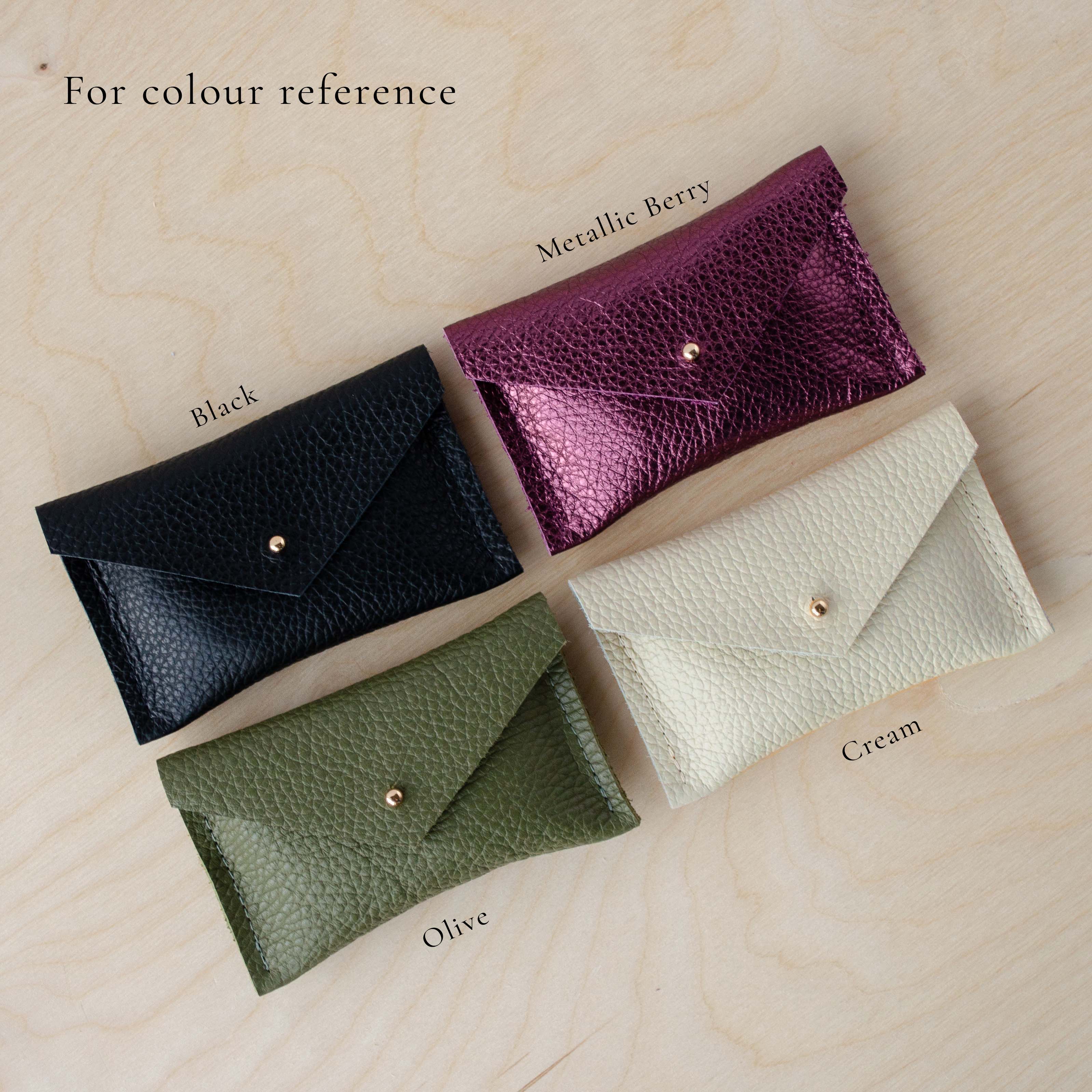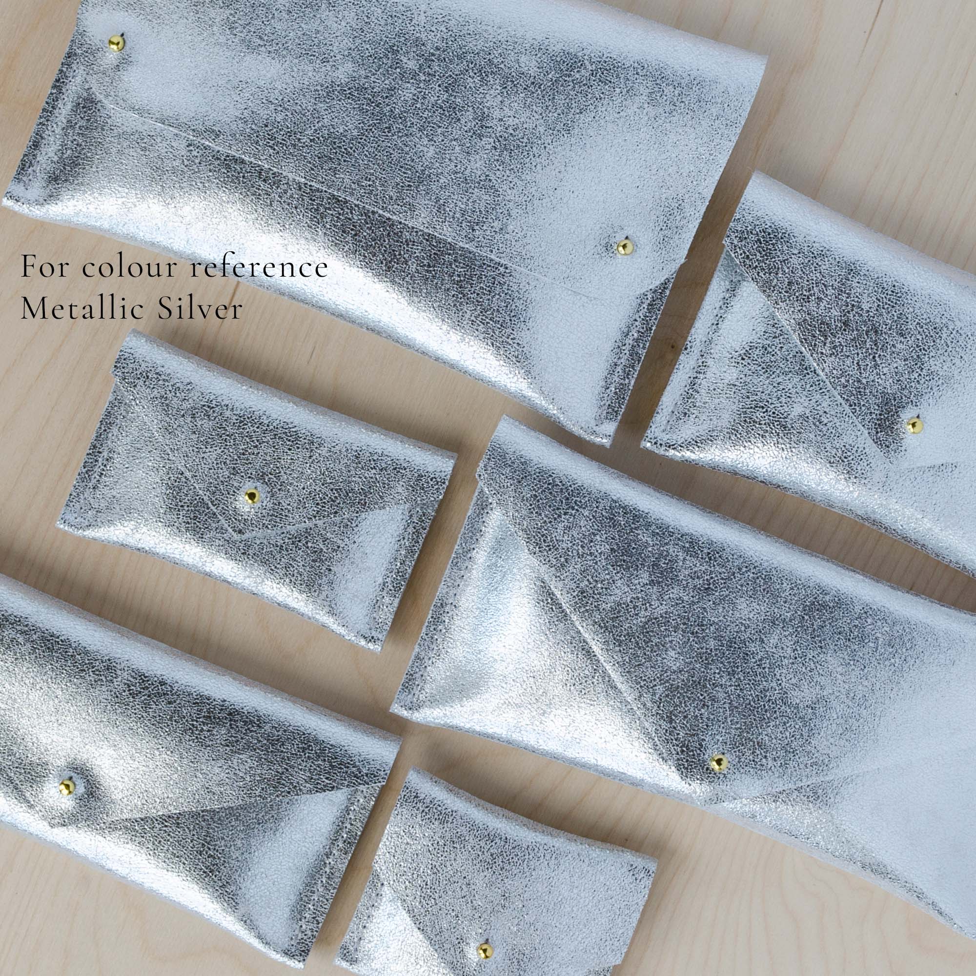 Our leather pouches are handmade in our studio in West Cornwall using high quality, Italian leather which we are proud to source locally from a supplier here in England. We cut out the pieces of leather for each pouch before sewing together by machine. They are finished with a minimalist stud fastening to close.