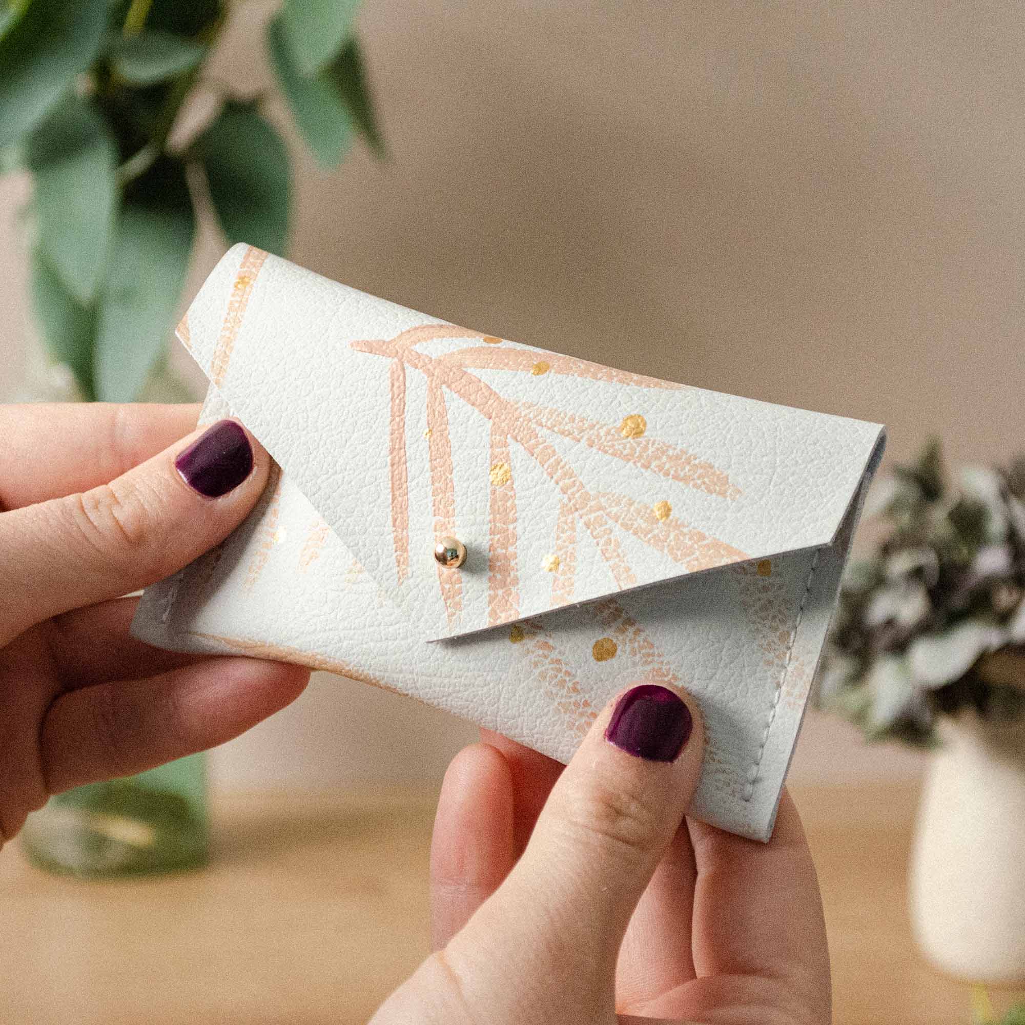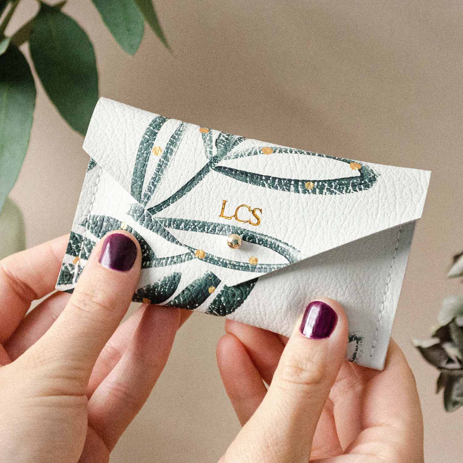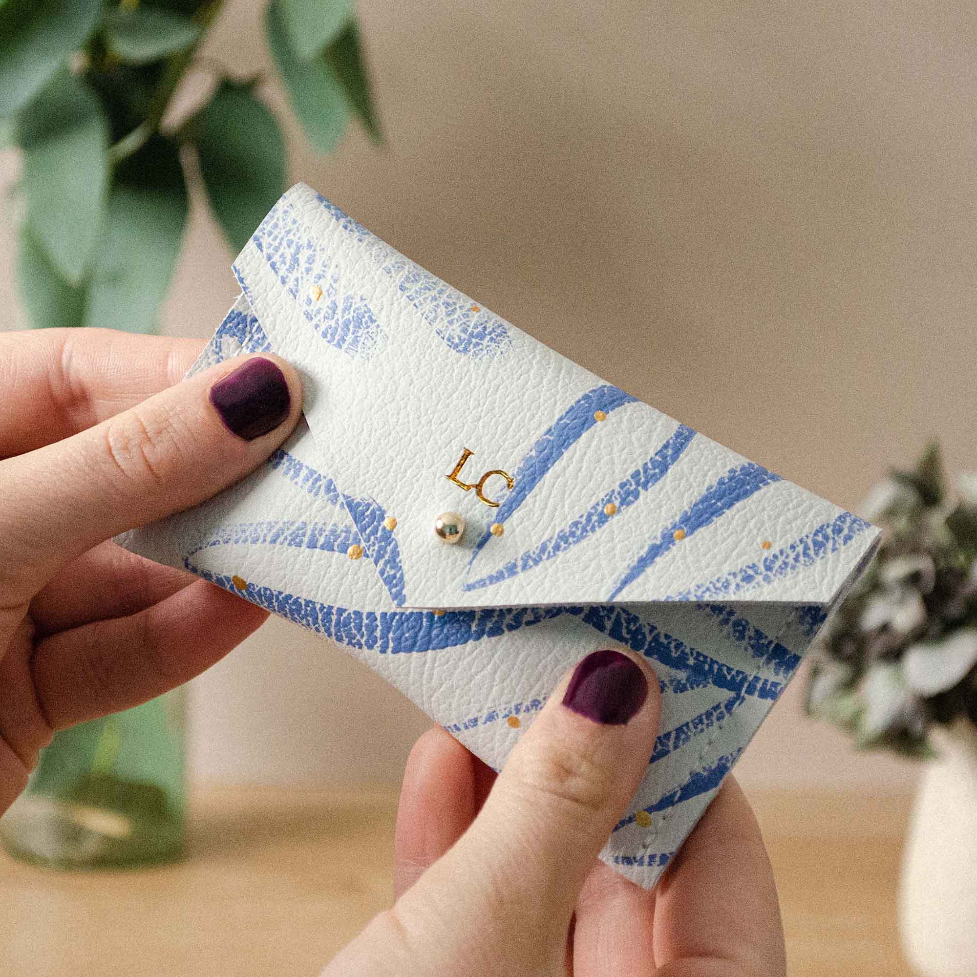Make your order personalised by adding initials or dates to the front of your pouch. Choose to add a mixture of letters, numbers and symbols to remember that special day or make an extra special personalised gift. Above is out Gold Card Holder.