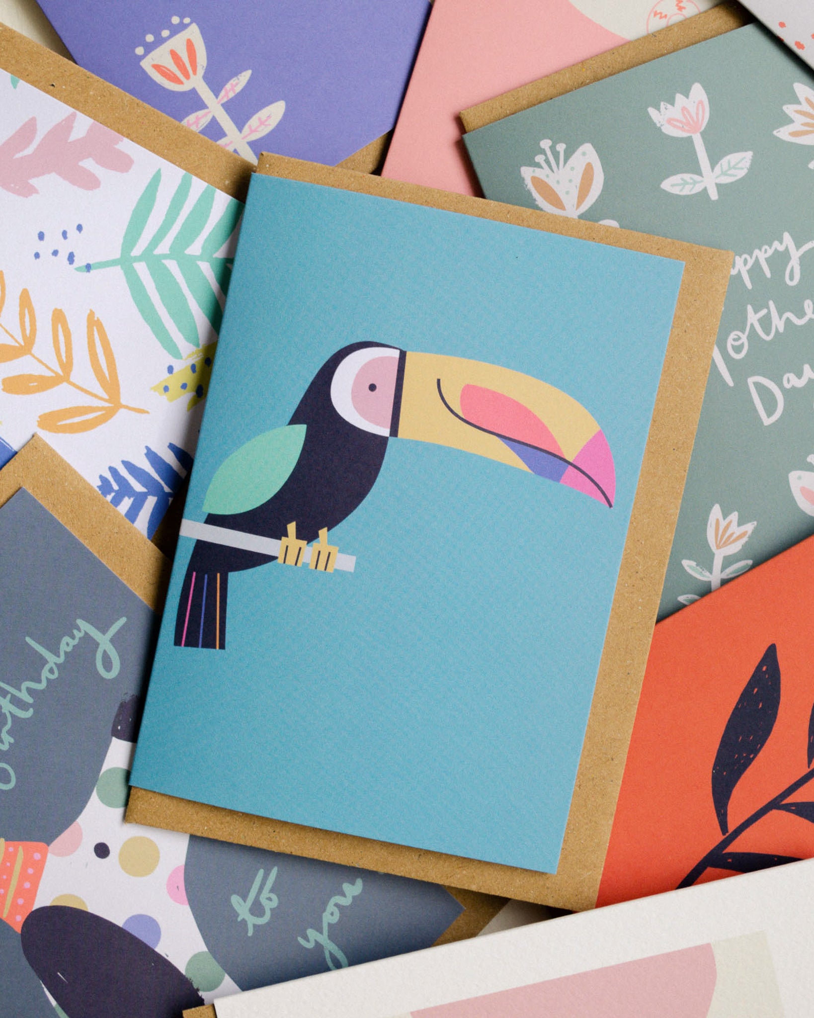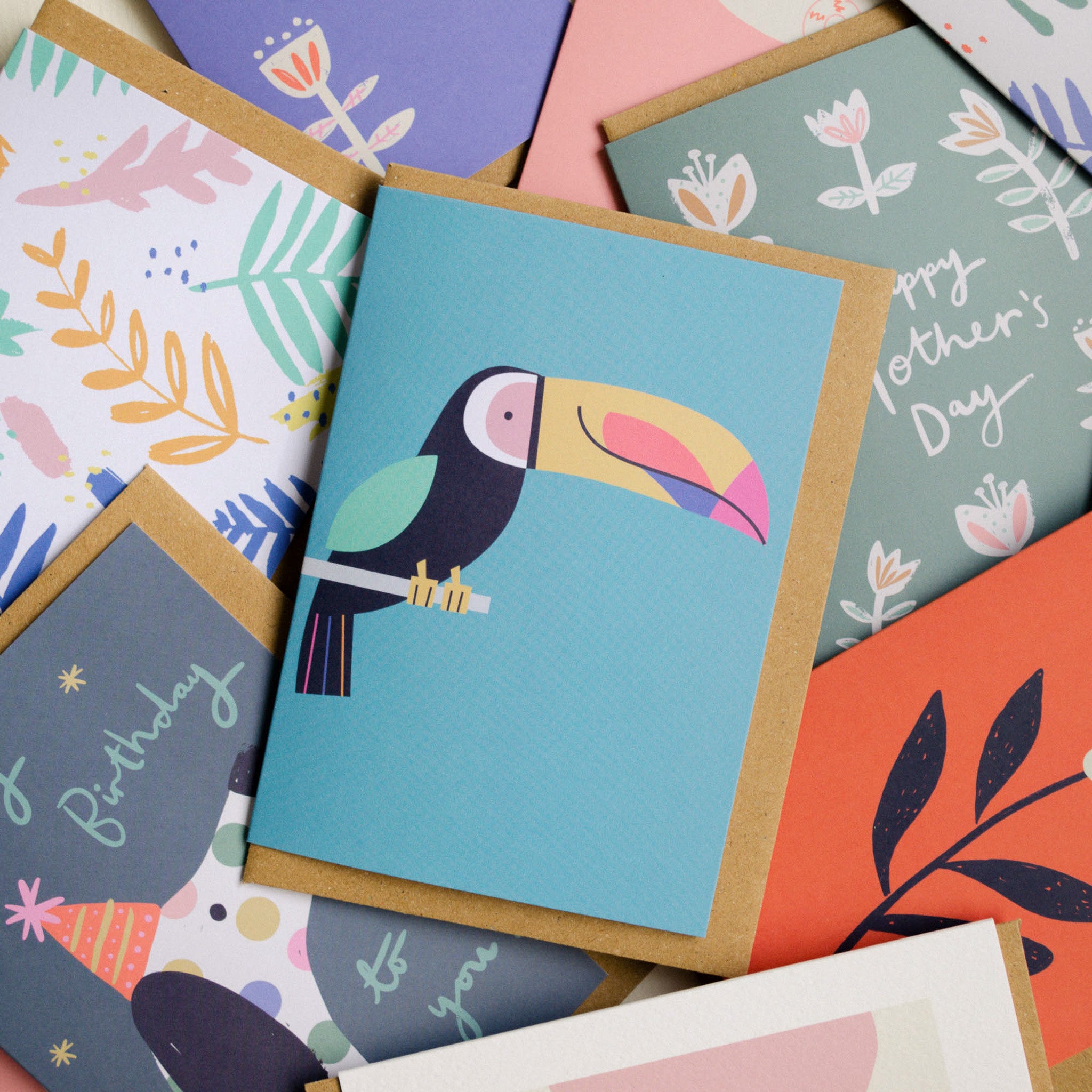 Birthday cards, blank cards, happy Mother's Day cards, cards for new homes and cards just to say, we've got all sorts of colourful illustrated cards. Colourful cards for all occasions, so whether you need a birthday card or a card just to brighten someone's day, hopefully you'll find the perfect piece of art for your message. Designed in our studio in Cornwall and printed in England.