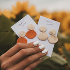 Our Bili Pop suede earrings are a beautiful pair to have as part of your everyday earring range. As these earrings are made with leather and suede they are super lightweight making them comfortable on your ears, whilst still being a statement, stylish earring design.