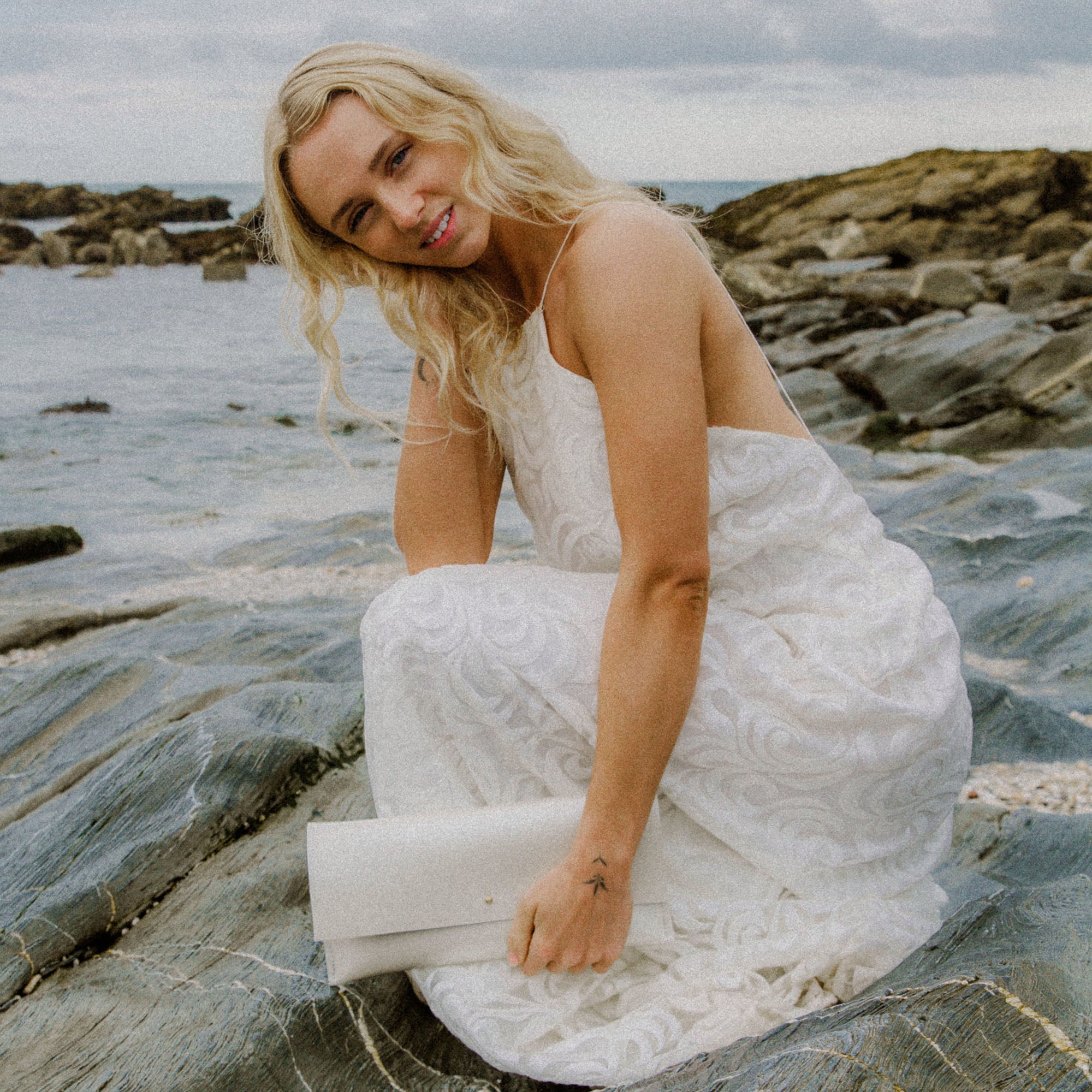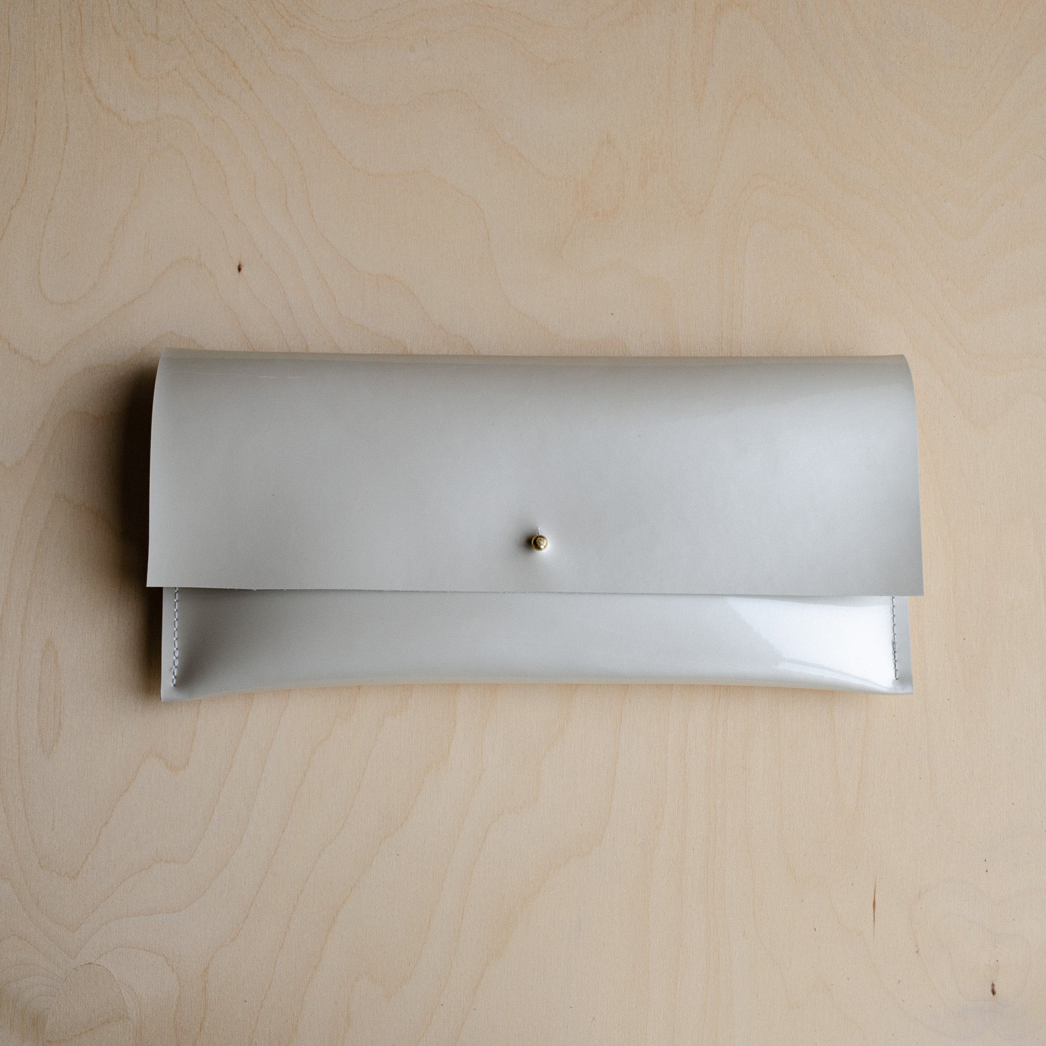 Our Maxi Leather Clutch Bag is made with a pearlescent patent leather in an off white, ivory colour that will remind you of mother of pearl. It makes a lovely clutch bag for carrying your phone and other essentials on your wedding day, it's the biggest of our clutch bags so you can get a few more bits in this one. Co-ordinate with matching glasses cases, jewellery pouches and earrings.