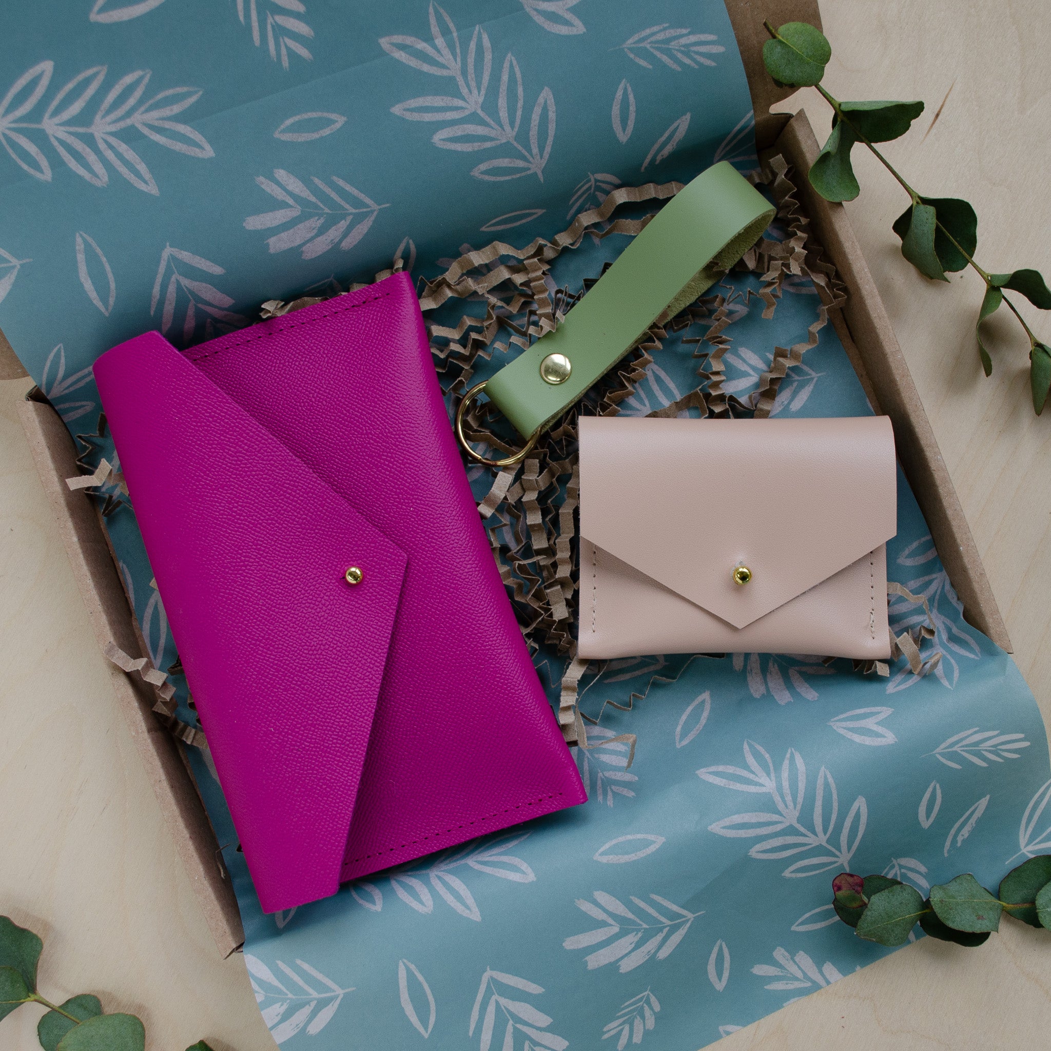 Shop a carefully curated mix of handmade leather gifts for every occasion, whether its gifts for mum, dad, your sister or a thank you gift for your next door neighbour who's fed the cat while you've been on your holidays. We're sure you'll find just the thing here for them! Add personalisation to make your leather accessories extra special, all items come wrapped in pretty tissue ready to gift.