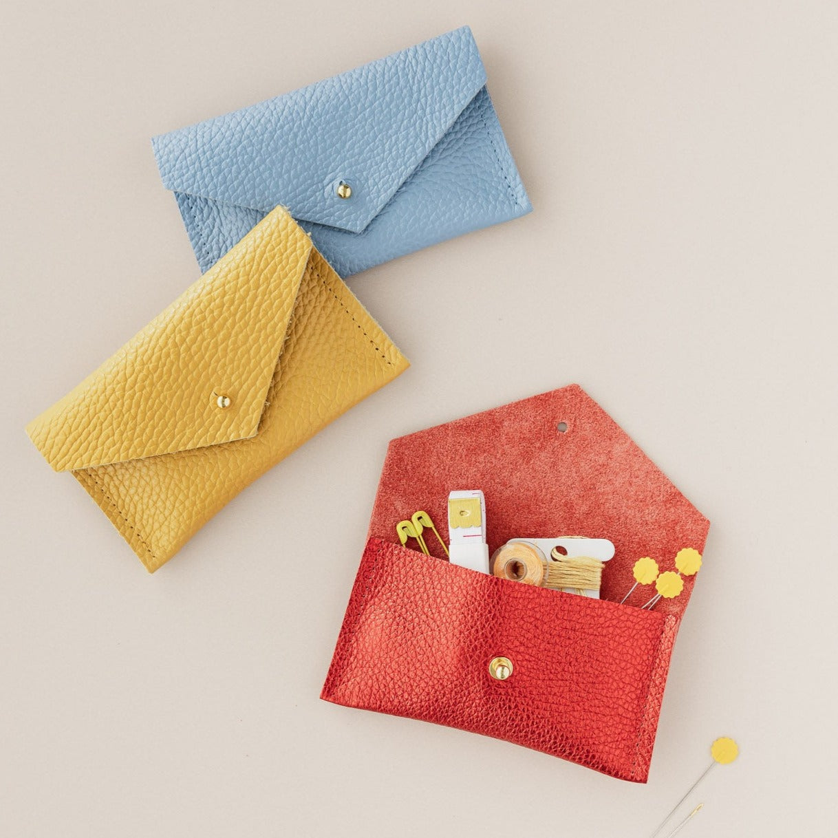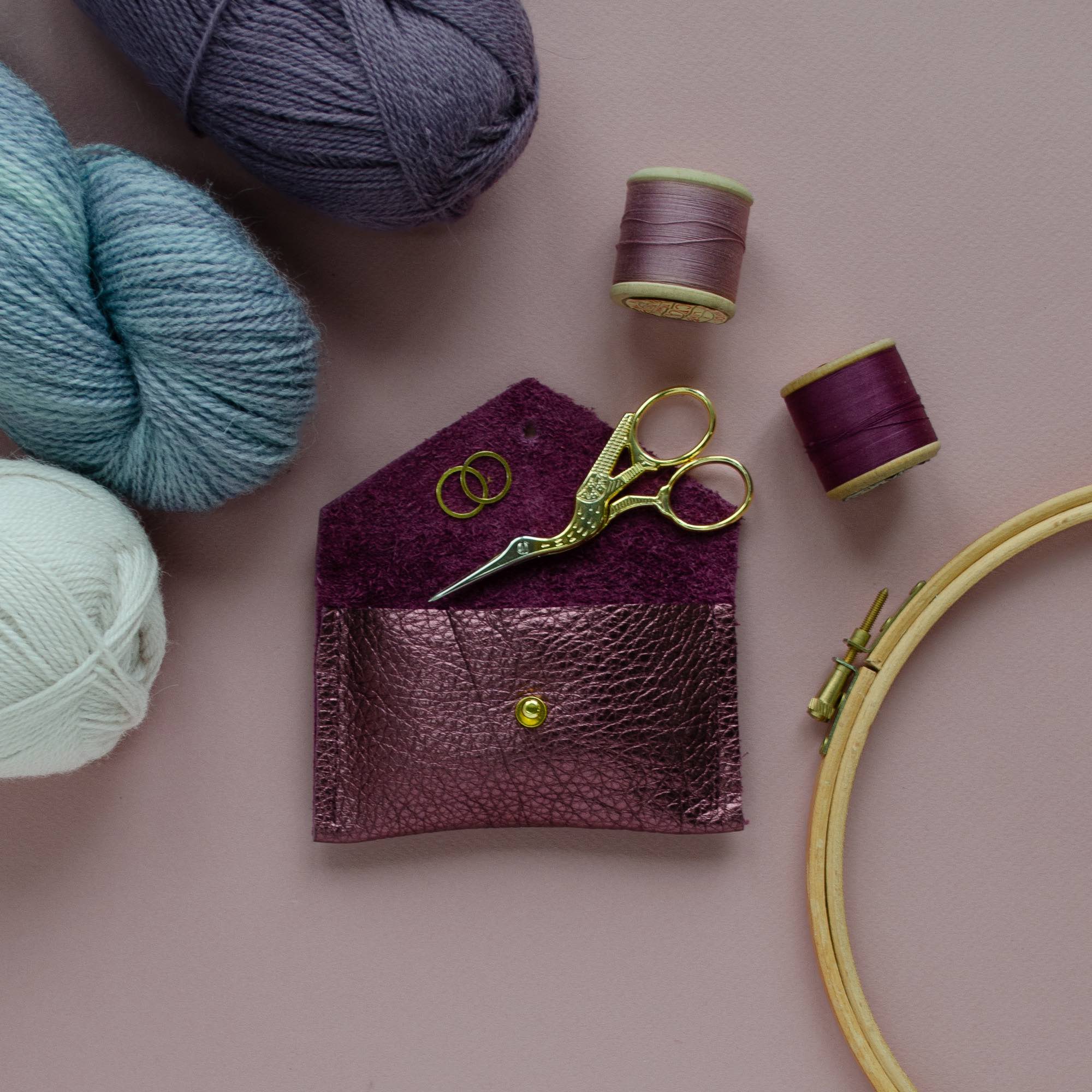 This gorgeously soft leather pouch is exactly what you need to contain all your craft supplies, but particularly those extra fiddly items. From scissors and needle tips to safety pins, stitch markers, thimbles and threaders, our Small Notions Pouch is great for storing them all.
