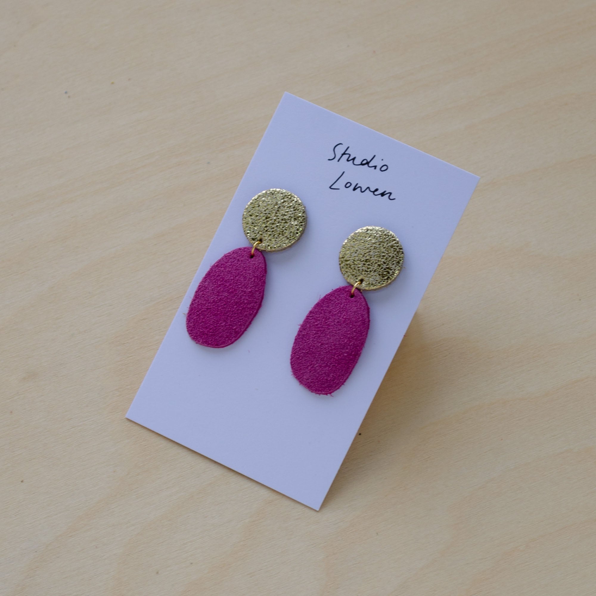 Made with our leather and suede offcuts. Each pair of earrings are cut with scraps of our leathers and suedes, they are then carefully assembled and attached to our jewellery findings.