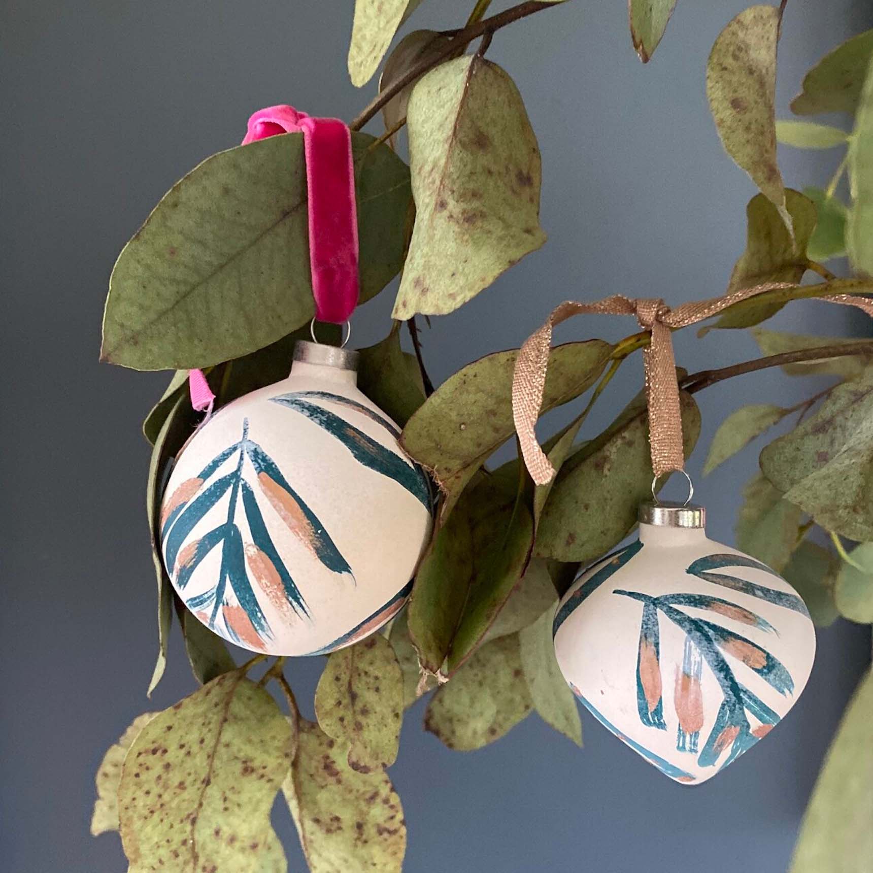 Botanical Hand-Painted Ceramic Christmas Baubles – Set of 3