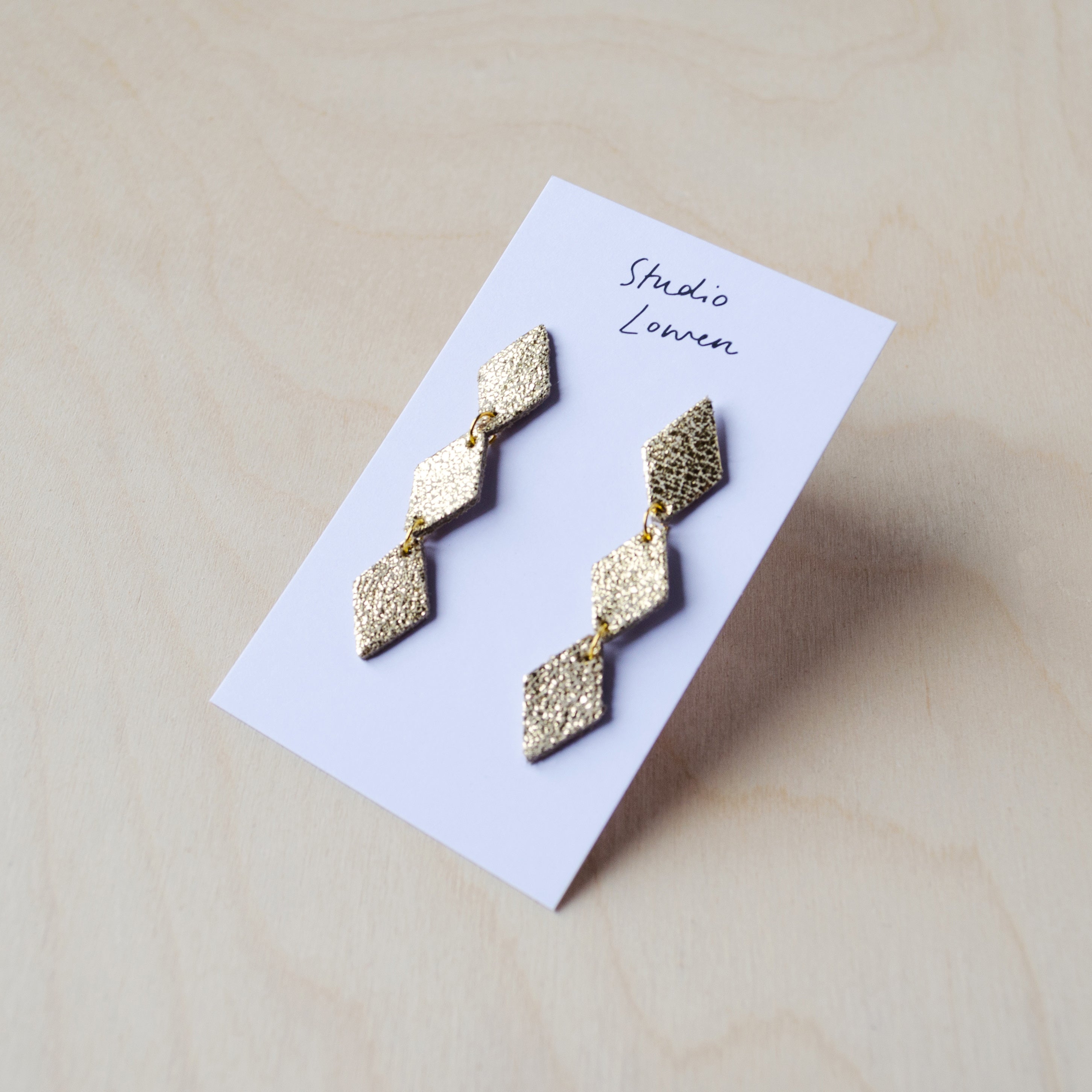 Made with our leather and suede offcuts. Each pair of earrings are cut with scraps of our leathers and suedes, they are then carefully assembled and attached to our jewellery findings.