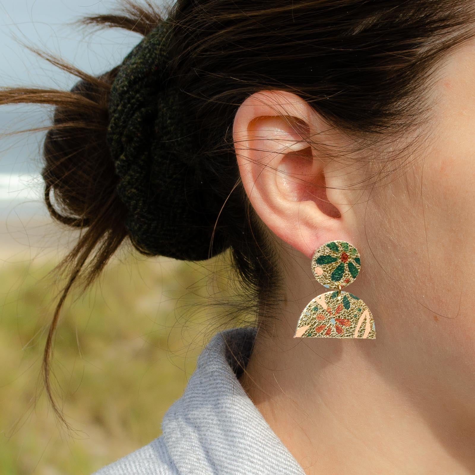 Made with our leather and suede offcuts. Each pair of earrings are cut with scraps of our leathers and suedes, they are then carefully assembled and attached to our jewellery findings.