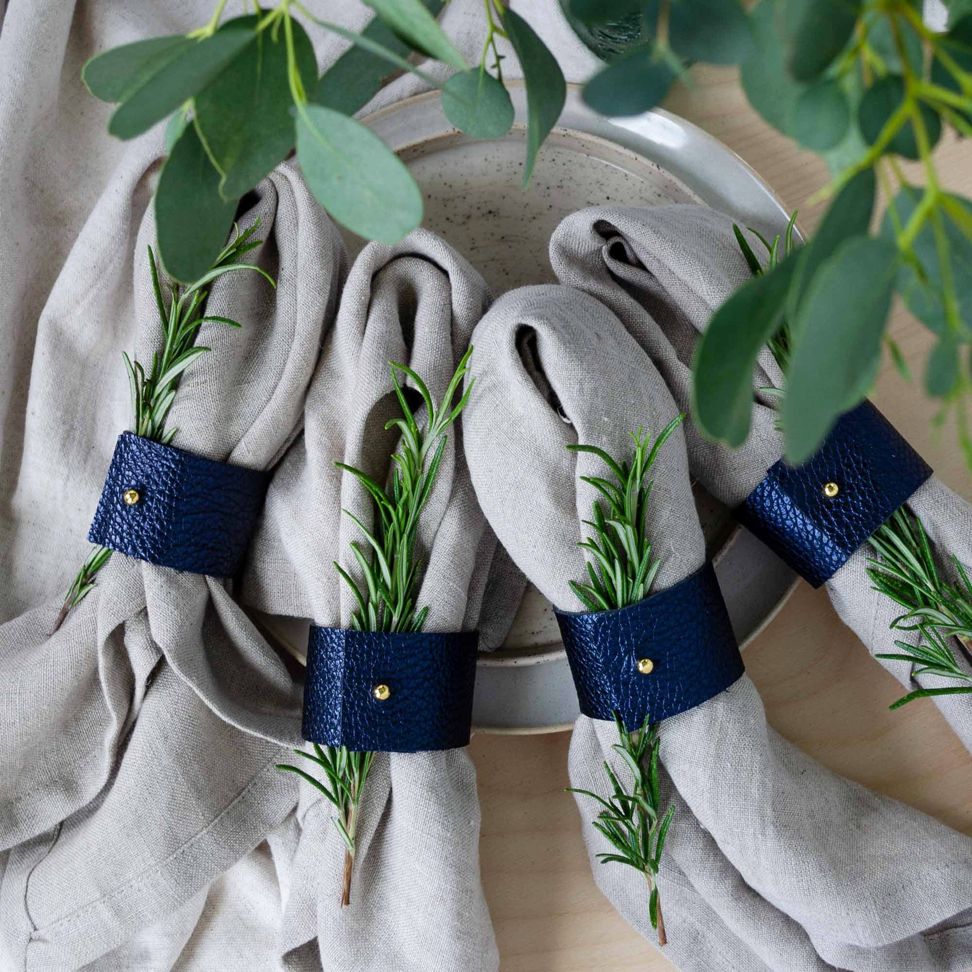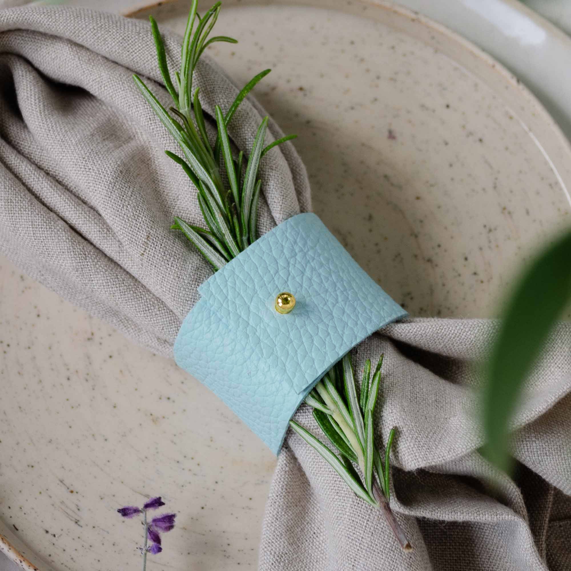 Jazz up your table decor with our beautiful leather napkin rings, available in a range of beautiful colours. These are made using up the smaller pieces of our leather hides, meaning we can minimise waste and turn something that might usually be discarded into something that will be cherished.