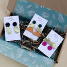 Limited time only! Grab yourself one of our mystery earring boxes which includes 3 different pairs of earrings. You'll receive a mix of discontinued styles, samples and designs that we never launched, it will be a surprise when you receive them! It will be a totally random pick of colours and designs, perfect for birthday gifts, Mother's Day presents or of course a treat for yourself!