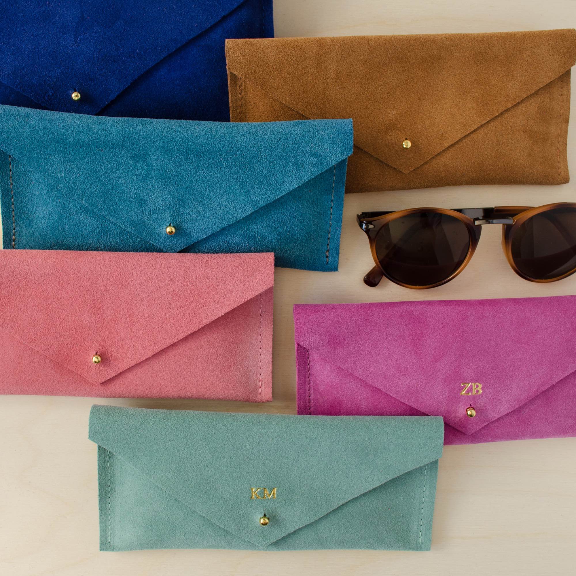 Our favourite personalised suede envelope glasses case, comes in lots of gorgeous colours. It's the perfect size for reading glasses or for keeping a pair of sunglasses safe in your pocket this summer!