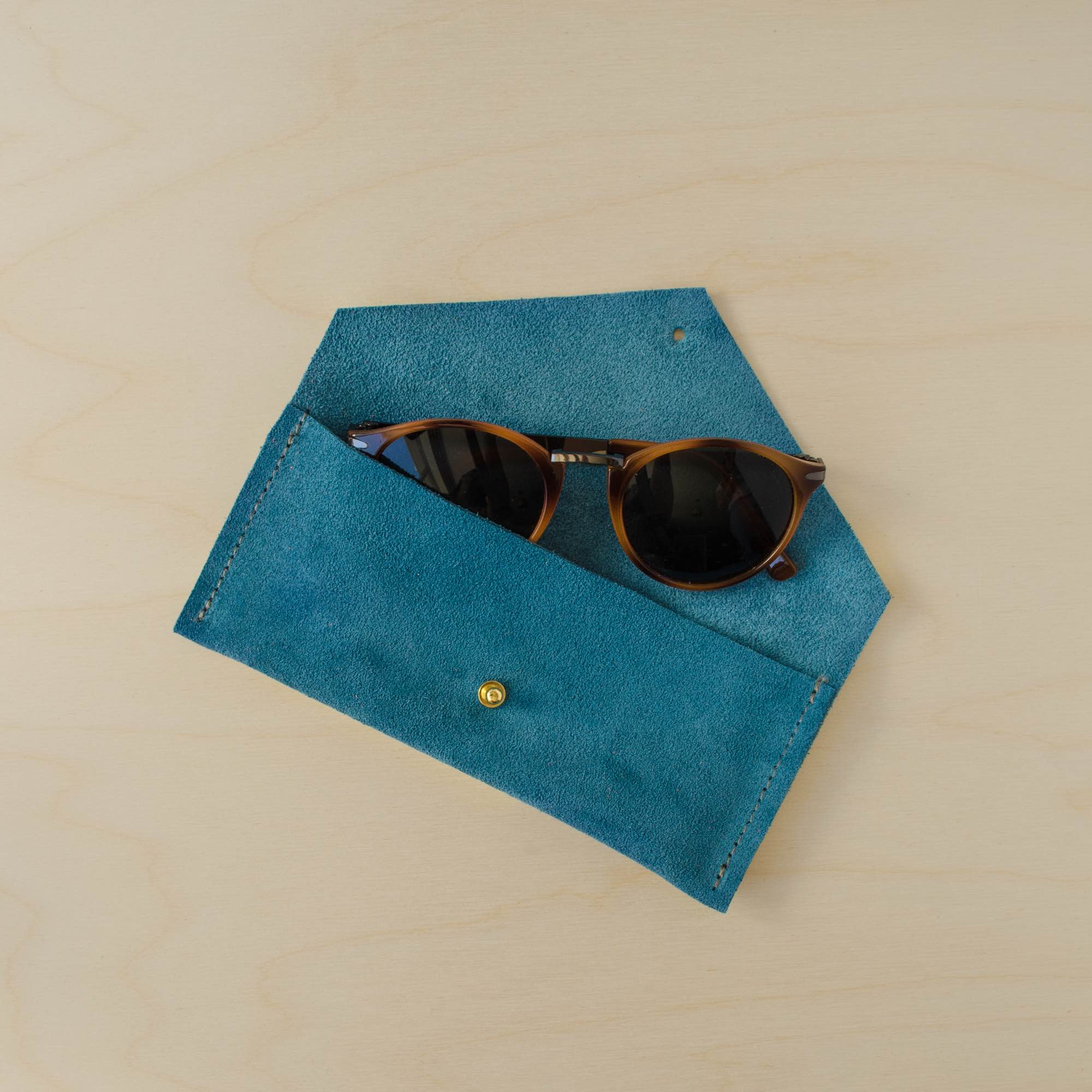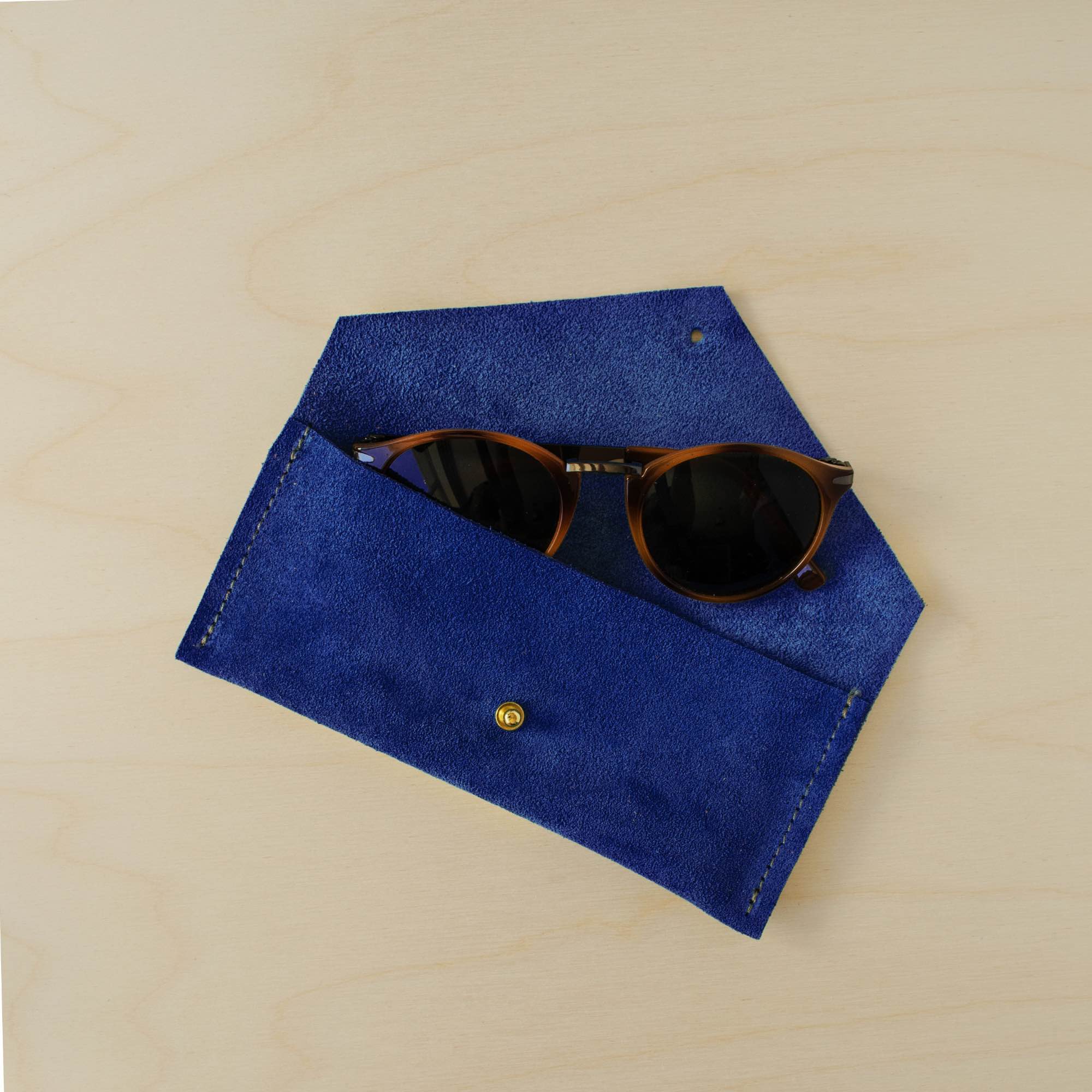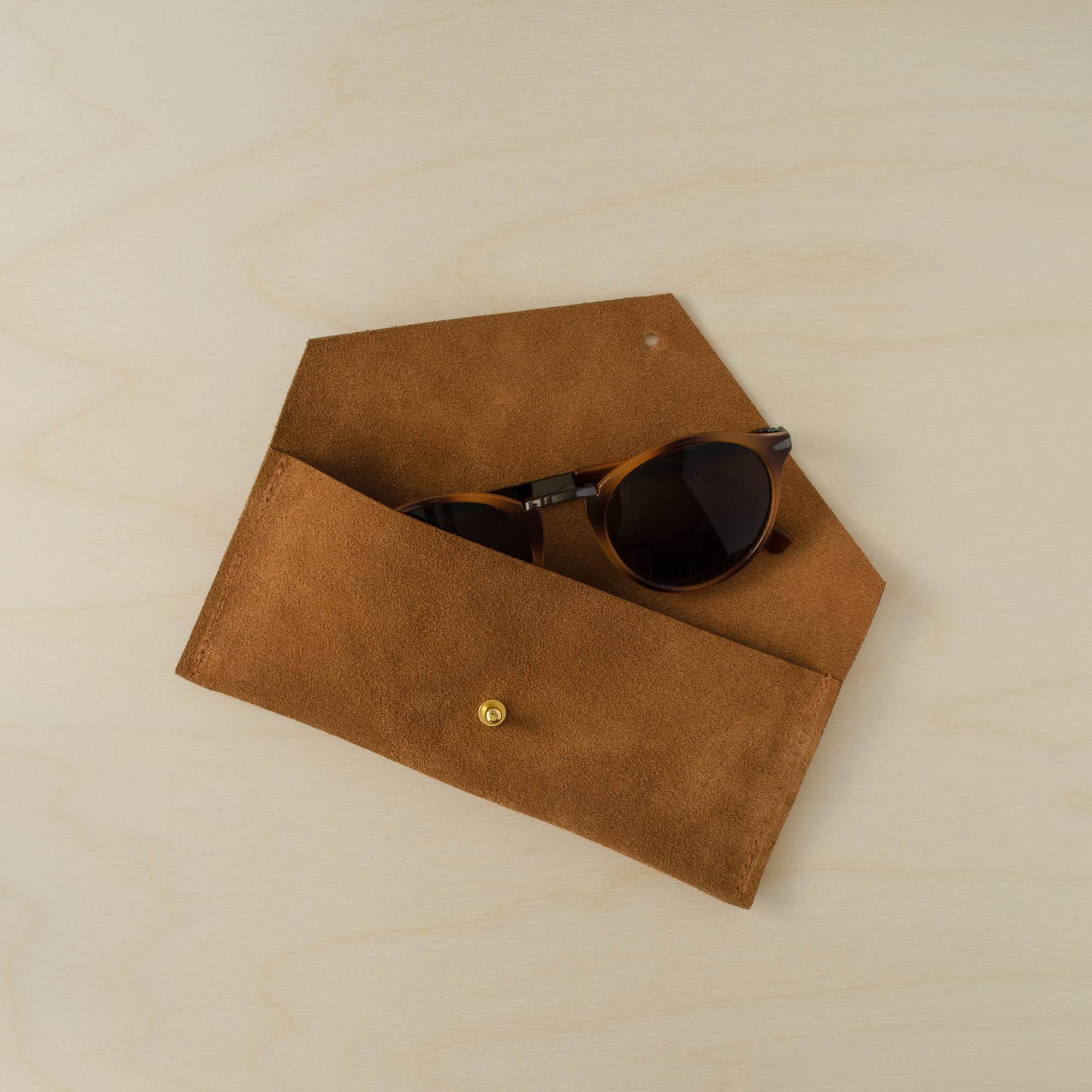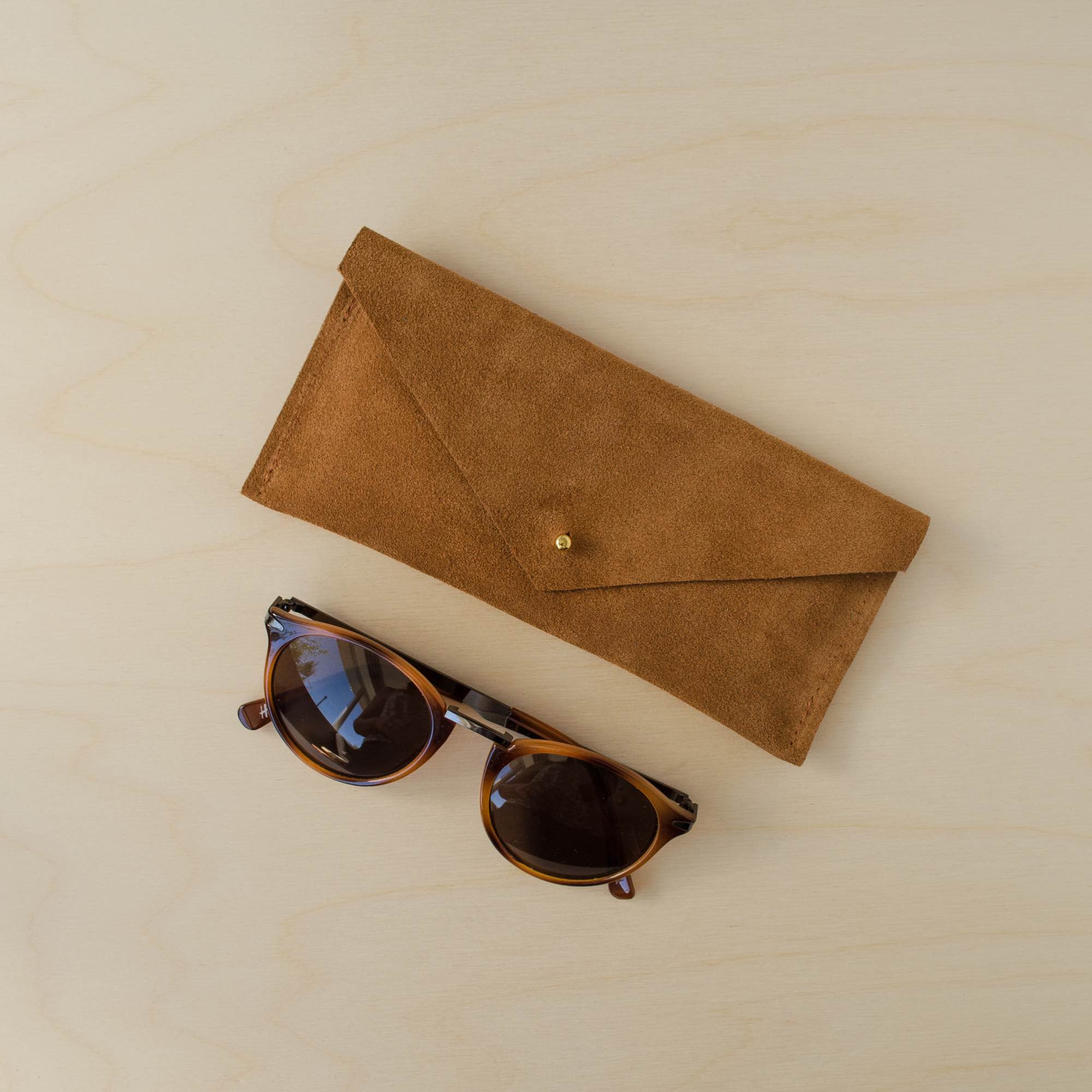 Each suede pouch is carefully crafted using high quality suede which we are proud to source locally from a supplier here in England. Each one is finished with a minimalist stud to fasten and keep your glasses safe. Choose from a silver or gold stud.