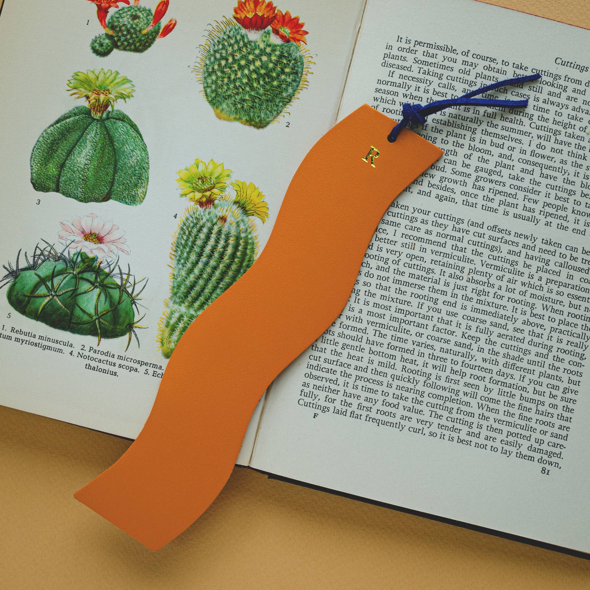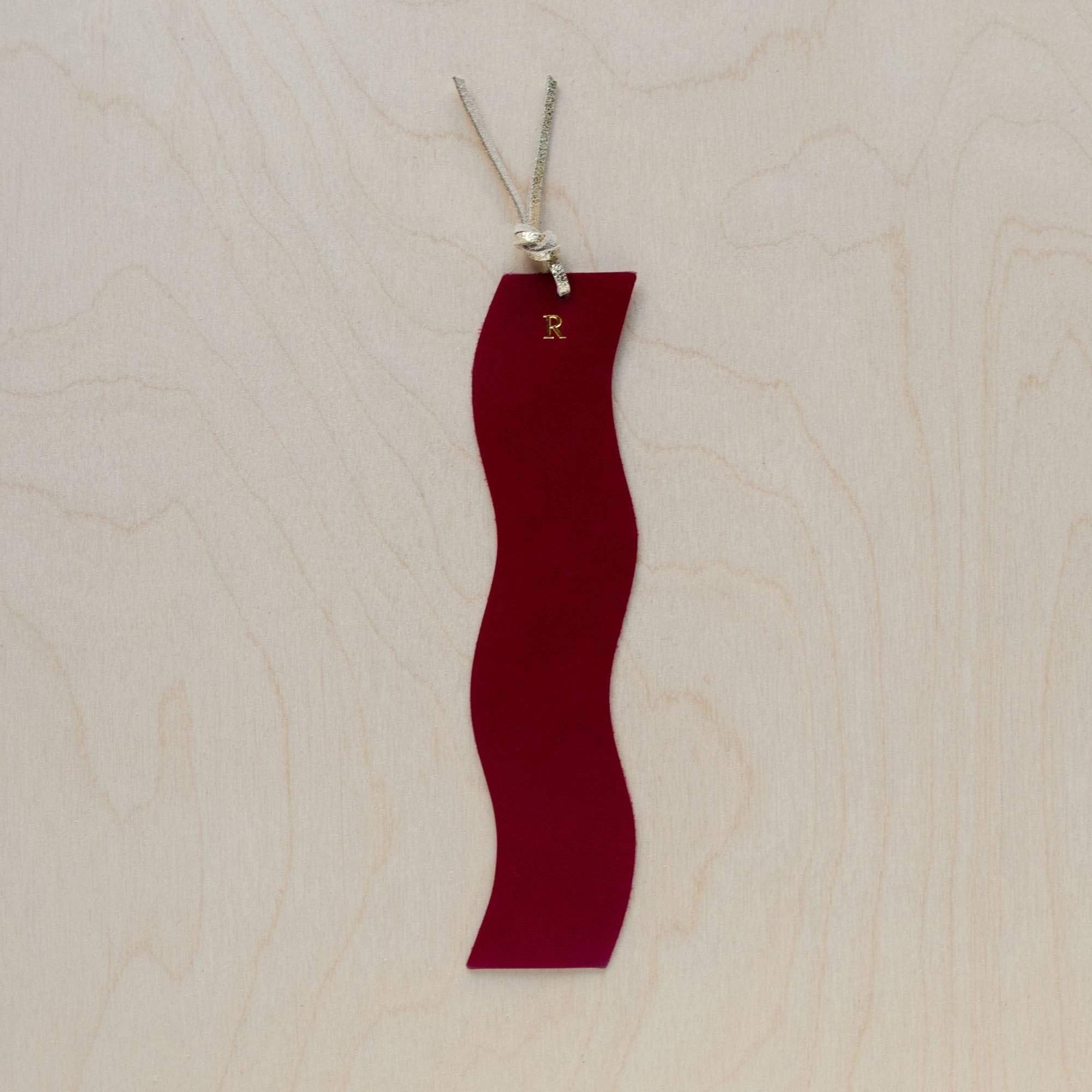 Our leather bookmarks come in a unique, cute wave shape and can be personalised with up to 3 letters, symbols or numbers. They come with a contrast suede or leather tassel detail which is made from offcuts from our other leathers.