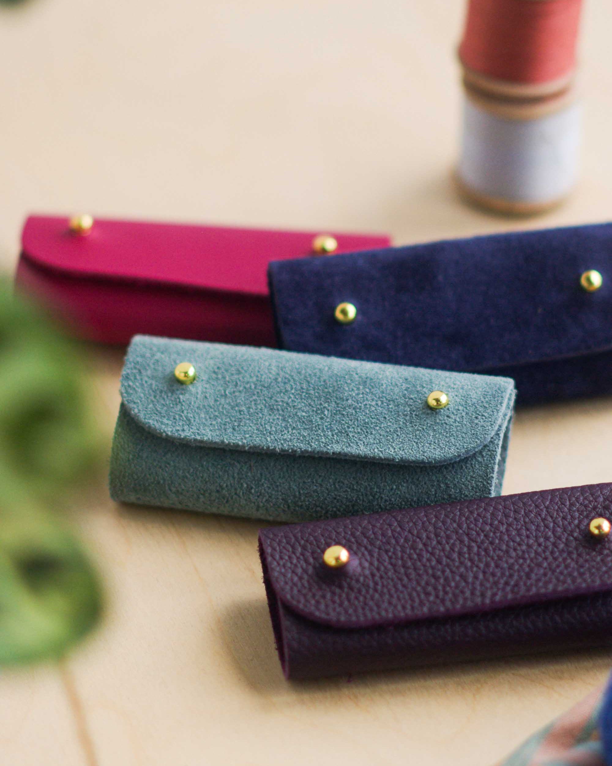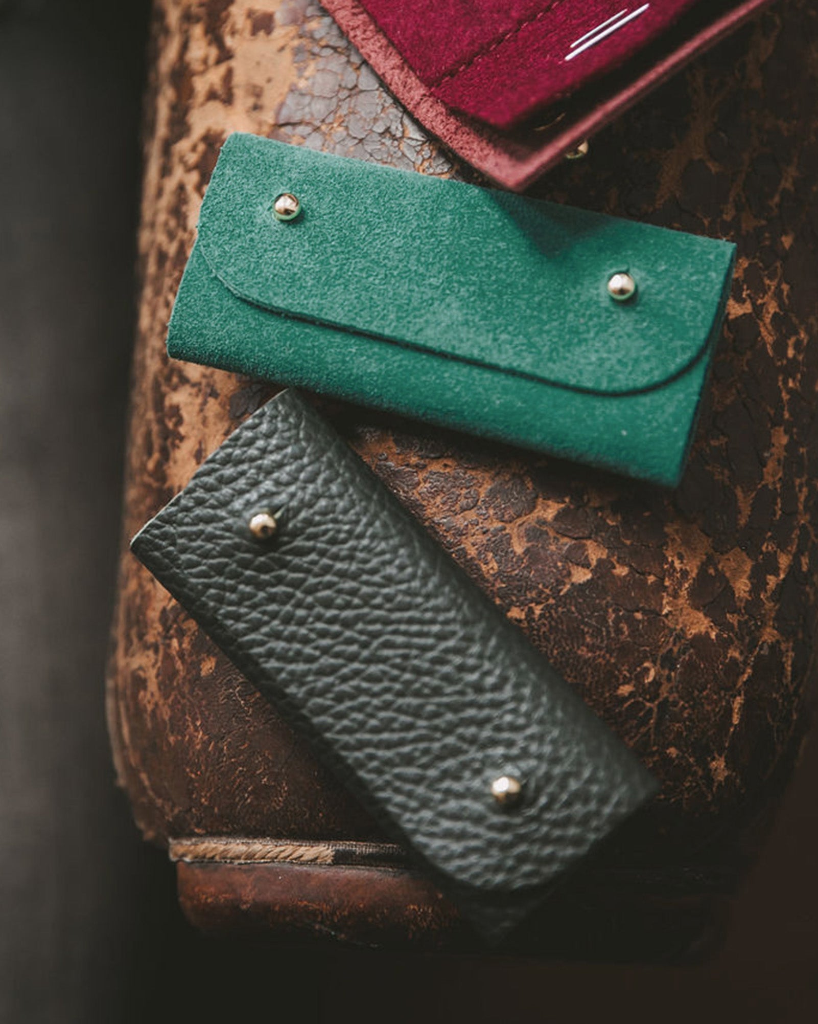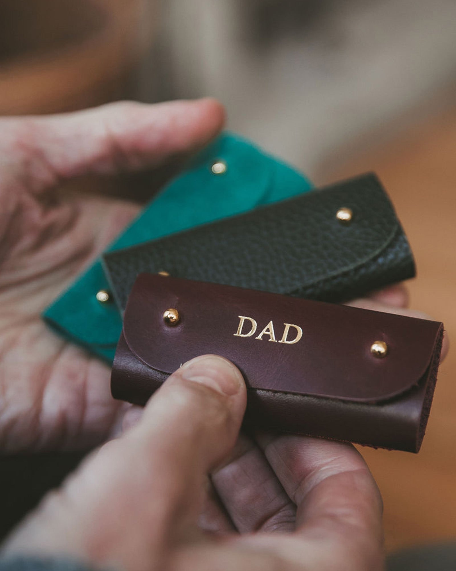 Shop handmade leather accessories for all occasions, whether it's a gift for a loved one or a treat for you. We made personalised leather glasses cases, keyrings, card holders and earrings from the offcuts.