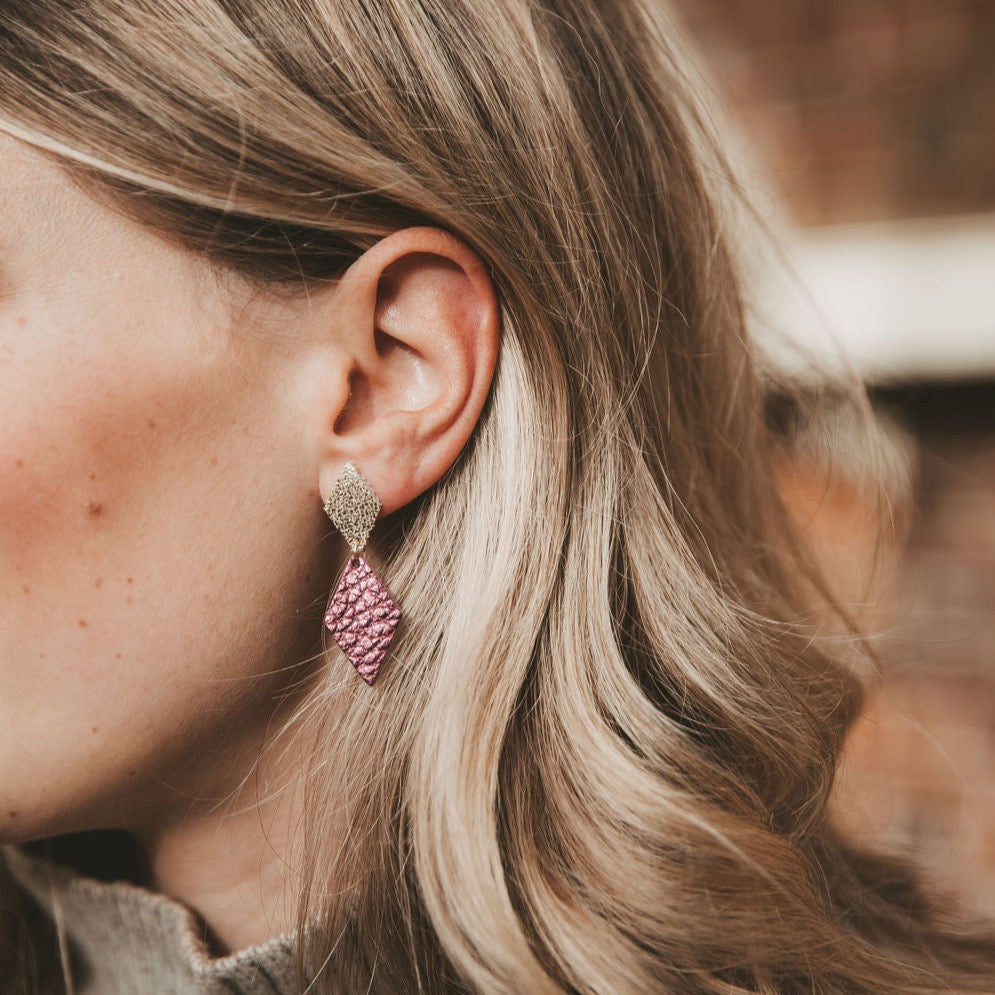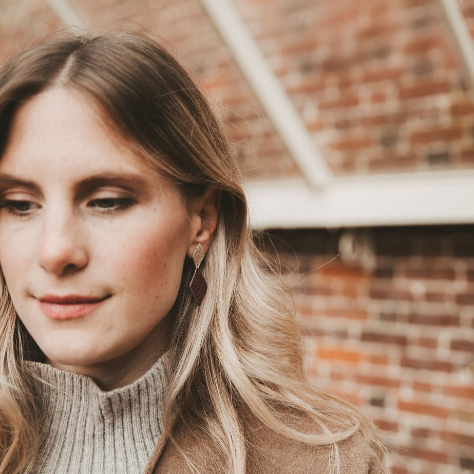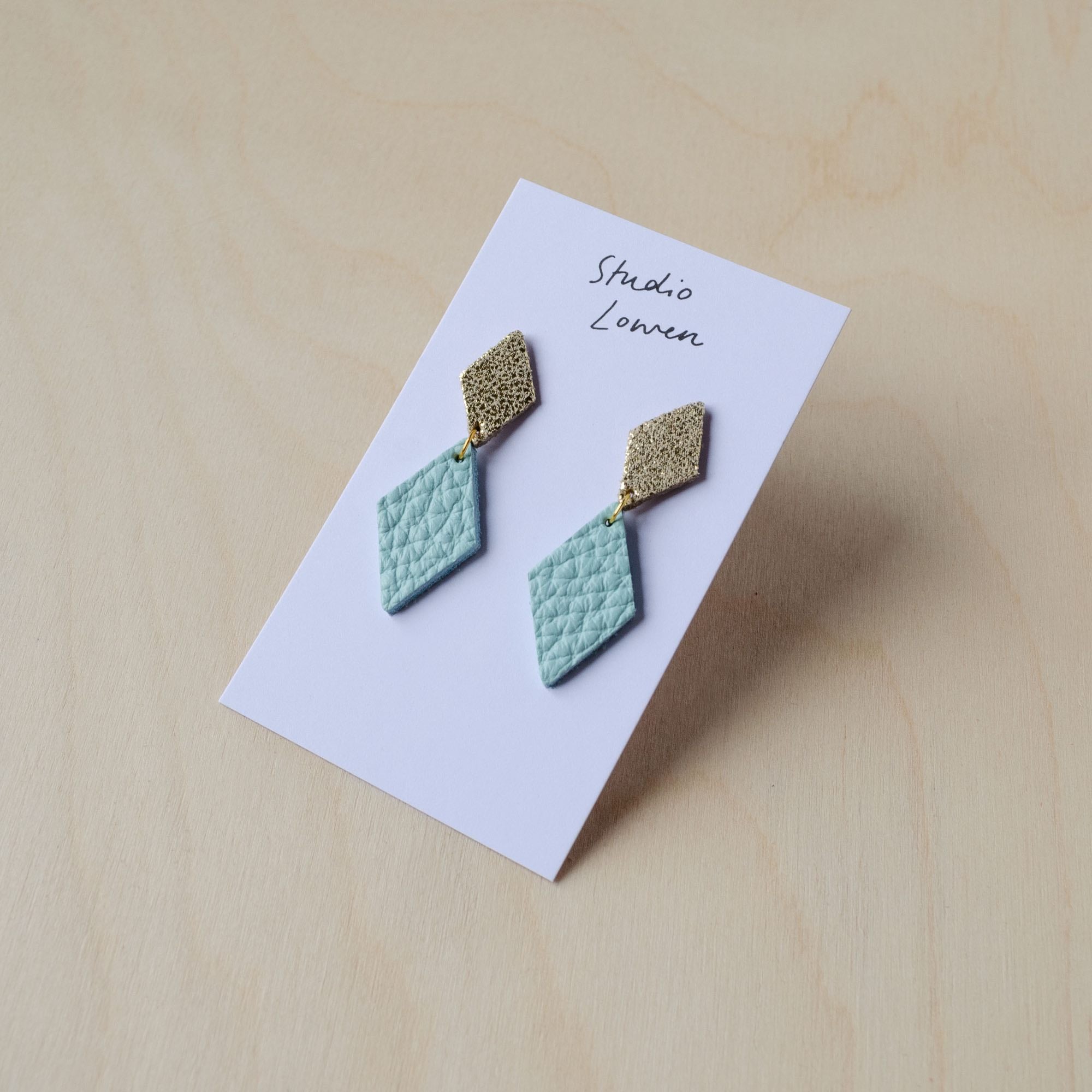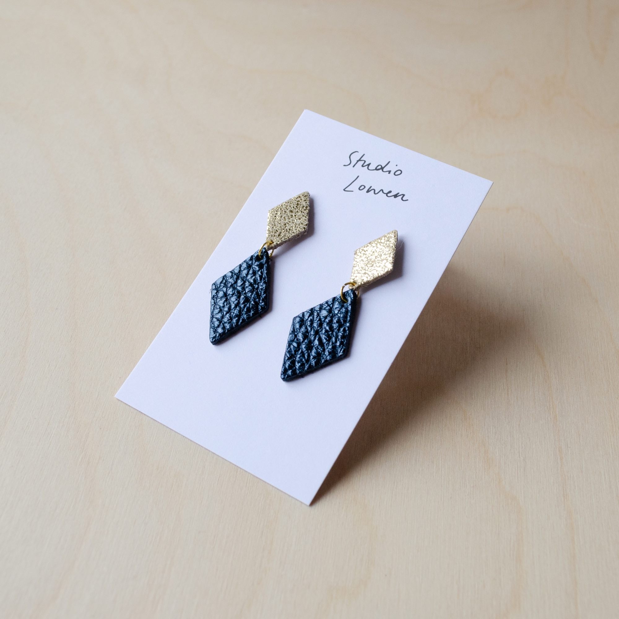 Made with our leather and suede offcuts. Each pair of earrings are cut with scraps of our leathers and suedes, they are then carefully assembled and attached to our jewellery findings.