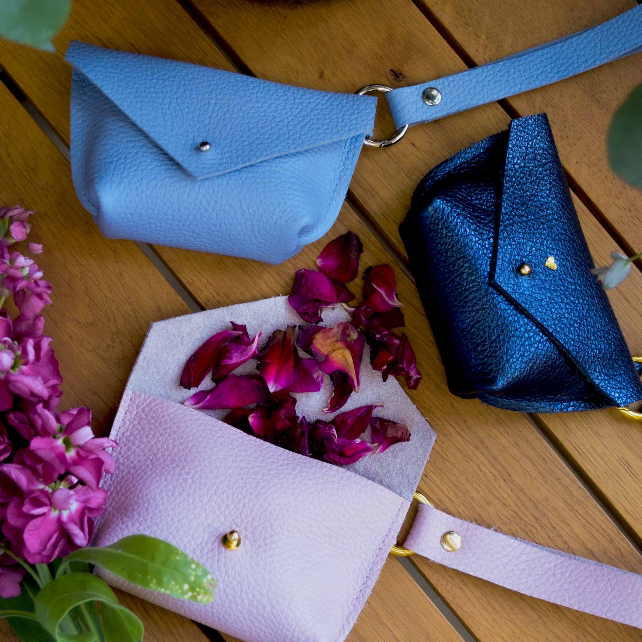 The confetti pouch comes in lots of gorgeous leather colours, choose between silver or gold hardware and add personalisation if you'd like to make it extra special!