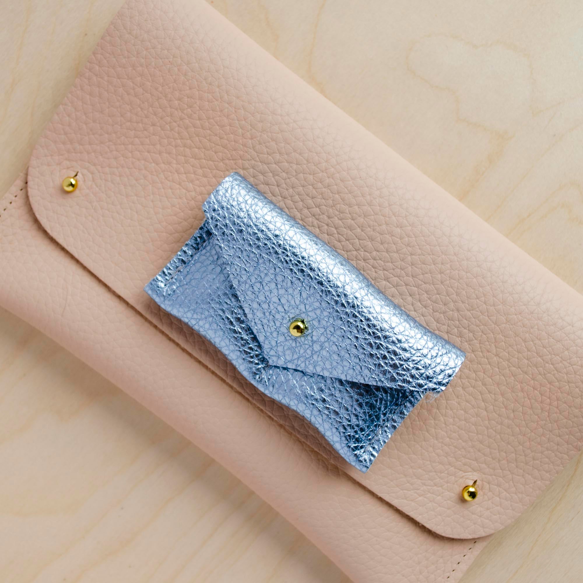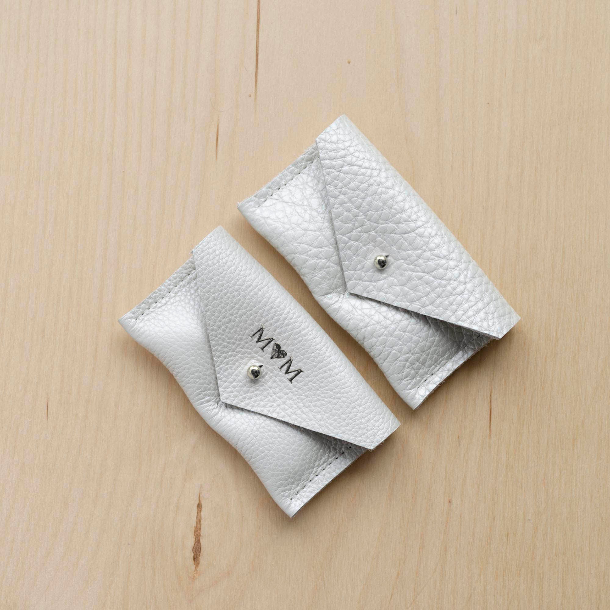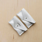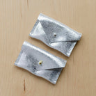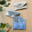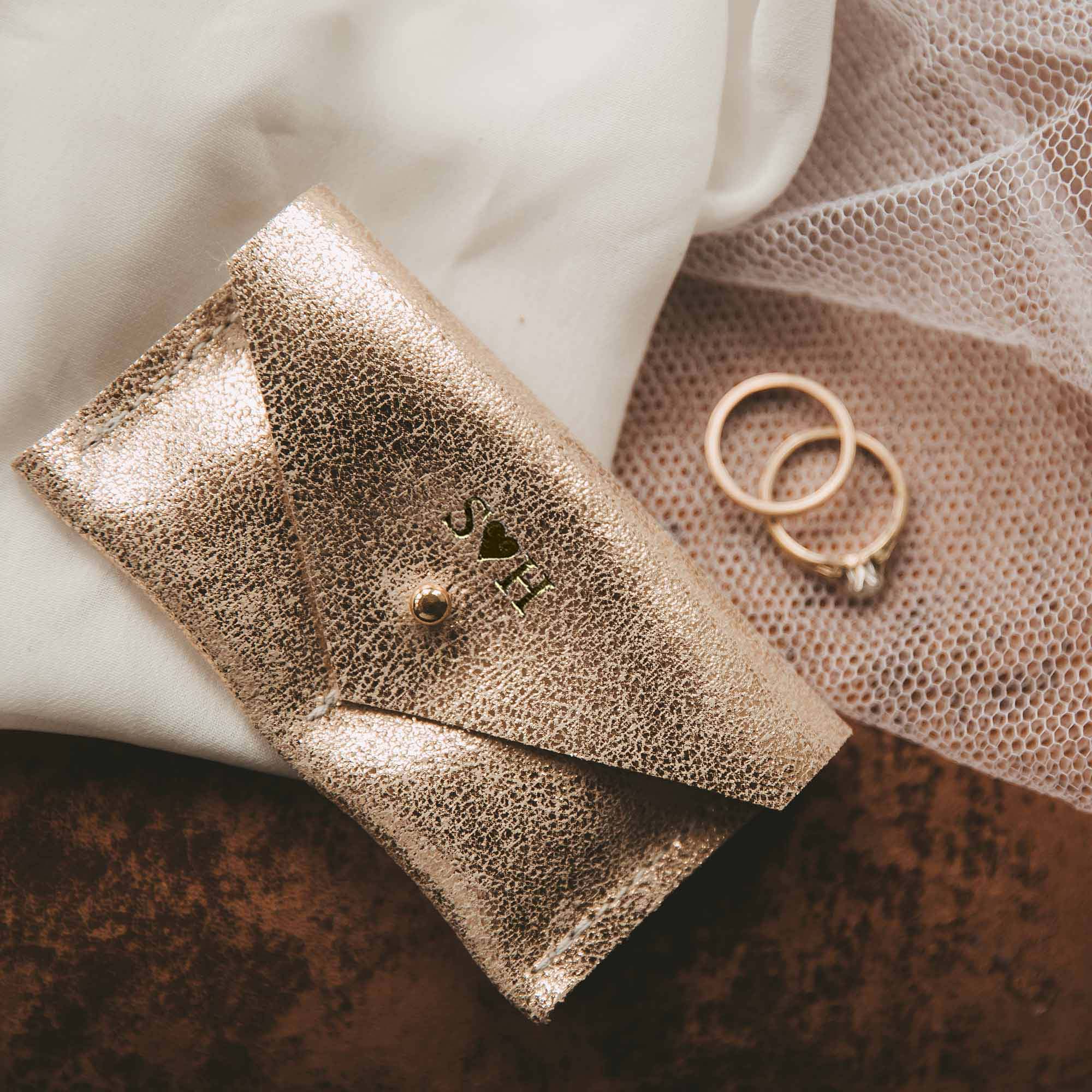 The couples ring pouch features two little pockets, one for each ring and a simple, minimalist stud fastening. Choose from silver or gold hardware.