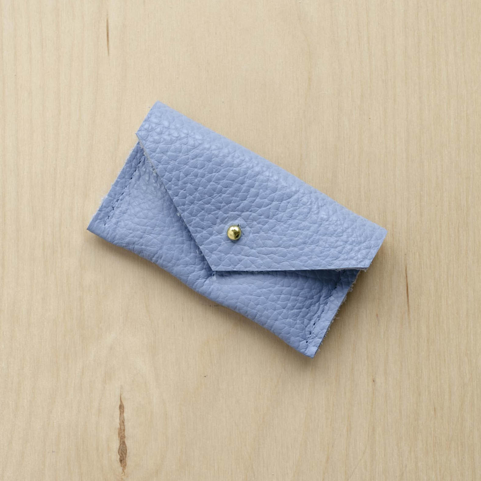 Our leather pouches are handmade in our studio in West Cornwall using high quality, Italian leather which we are proud to source locally from a supplier here in England. We cut out the pieces of leather for each pouch before sewing together by machine. They are finished with a minimalist stud fastening to close. Choose from silver or gold.