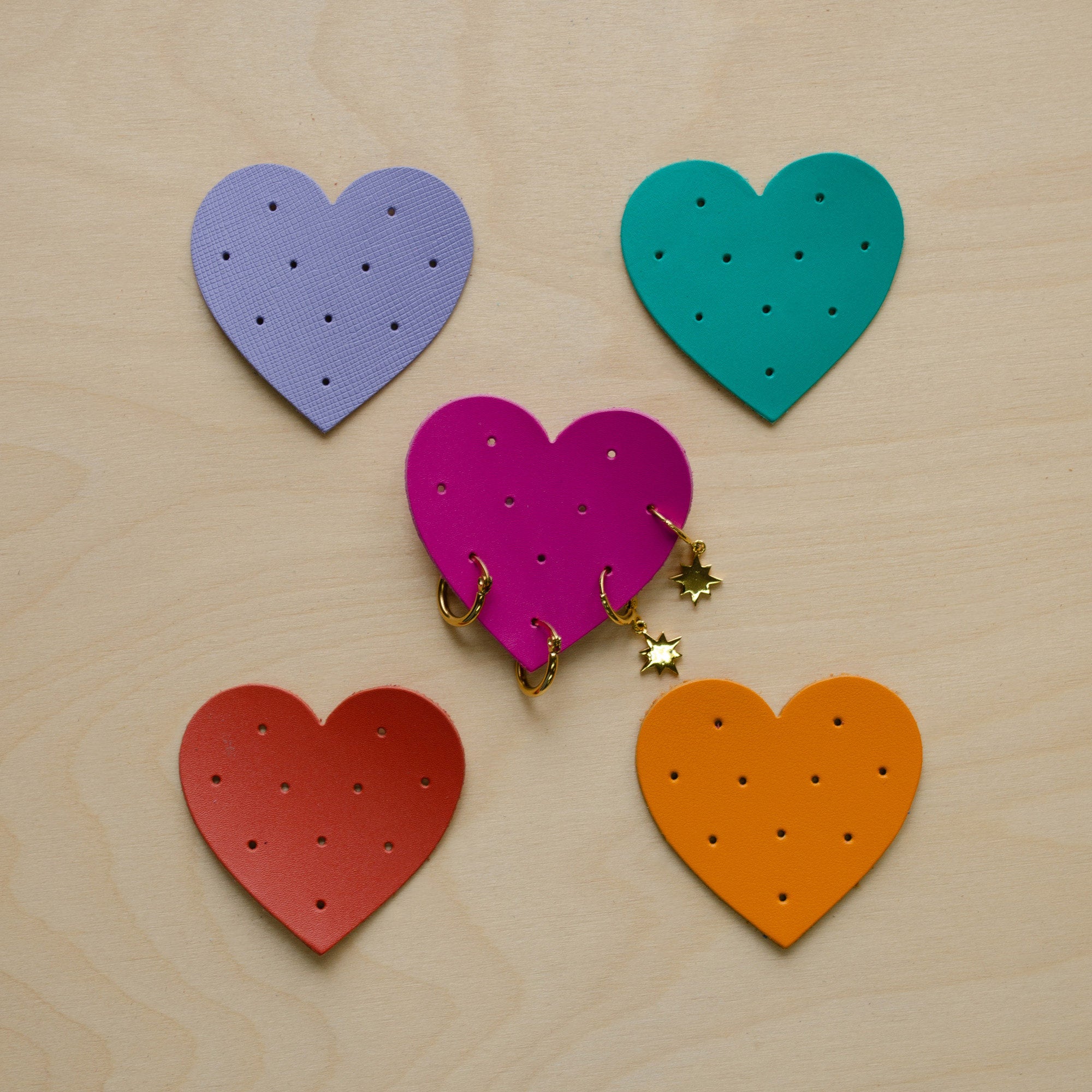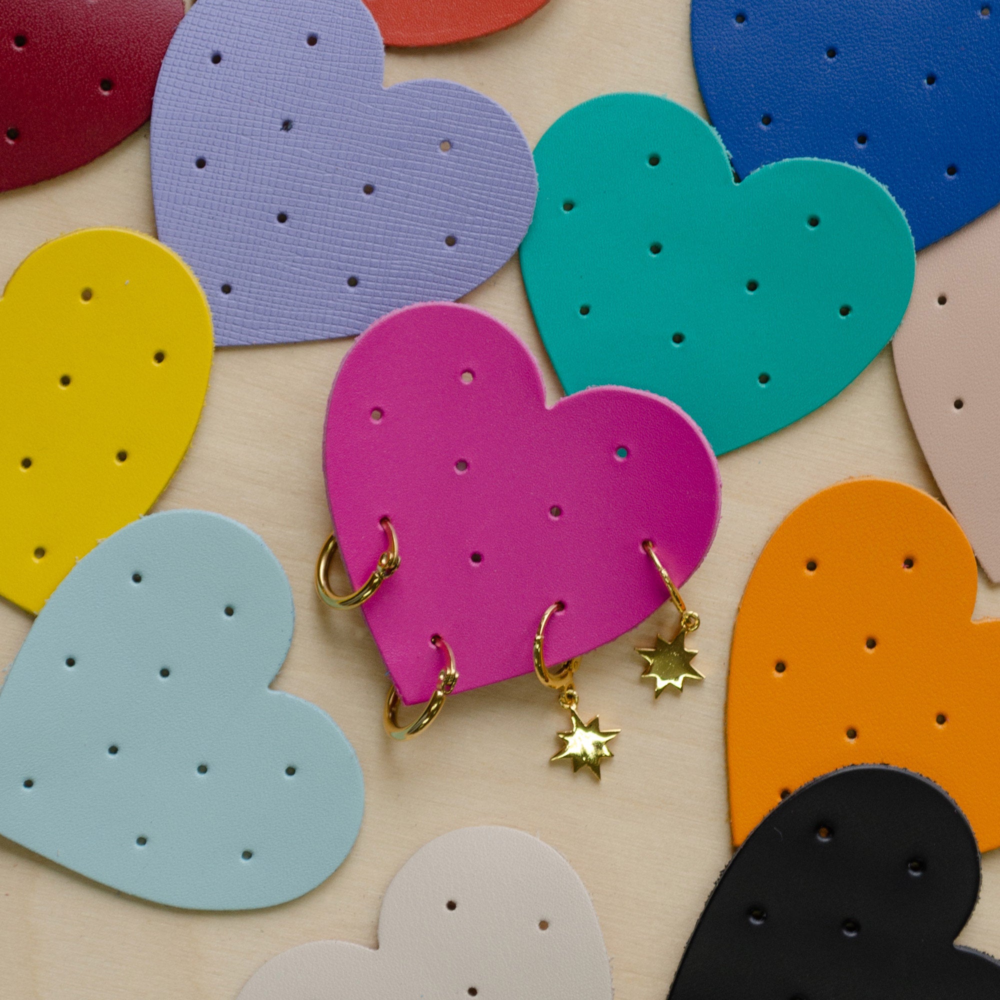 Say hello to our Heart Leather Earring Holder in these gorgeous new bright leather colours. How many single earrings do you have floating around in your jewellery box searching fruitlessly for their counterpart? It’s frustrating to notice that you’ve lost a stud especially when that pair would compliment your outfit perfectly, right?! Our solution?