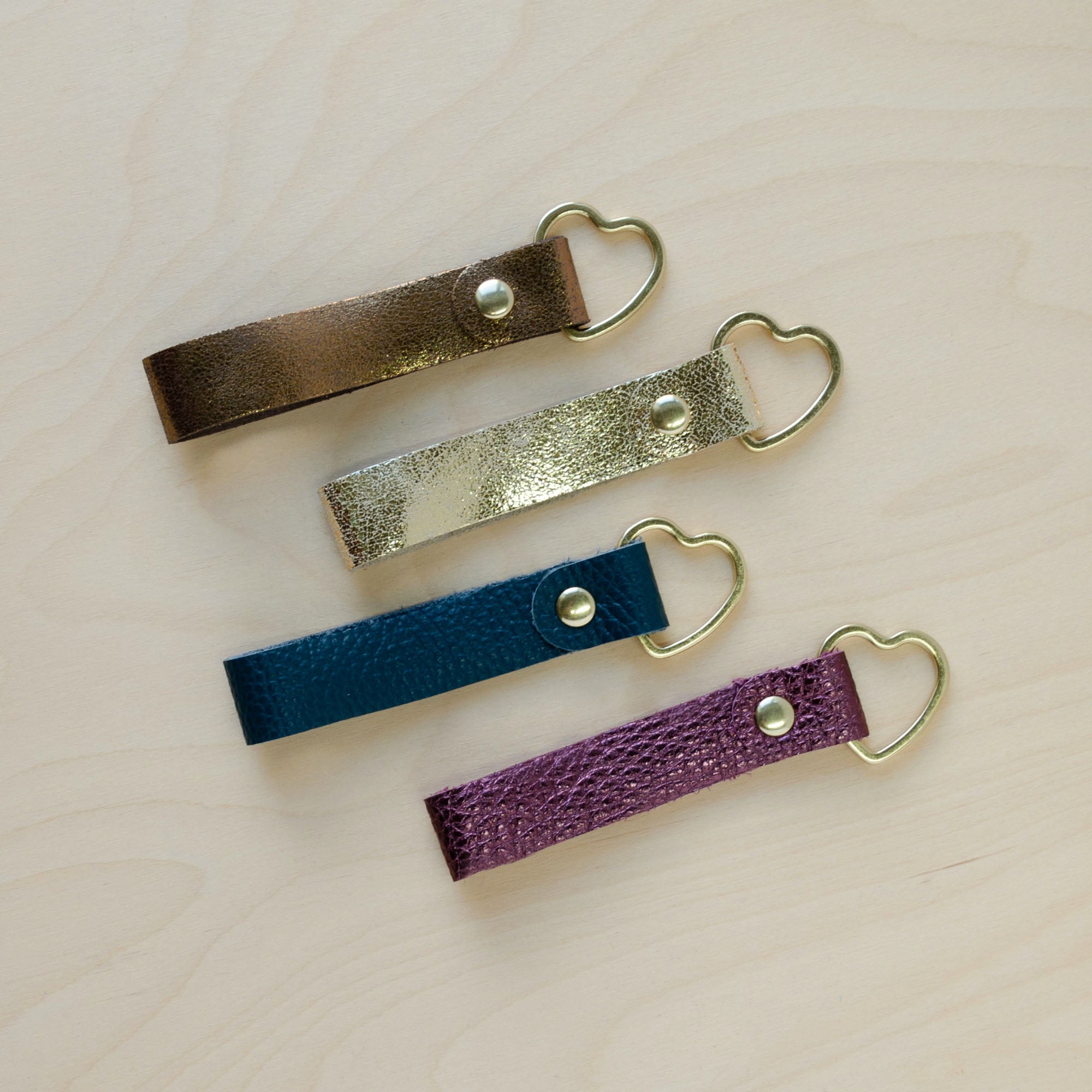 Share some love with our gorgeous simple leather loop keyrings, featuring a heart shaped split ring. These are made with offcuts of our beautiful leathers.