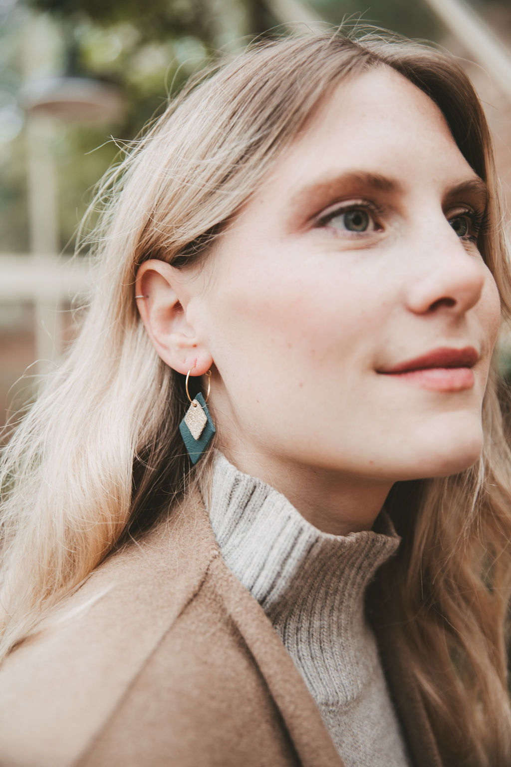 Made with our leather and suede offcuts. Each pair of earrings are cut with scraps of our leathers and suedes, they are then carefully assembled and attached to our jewellery findings.