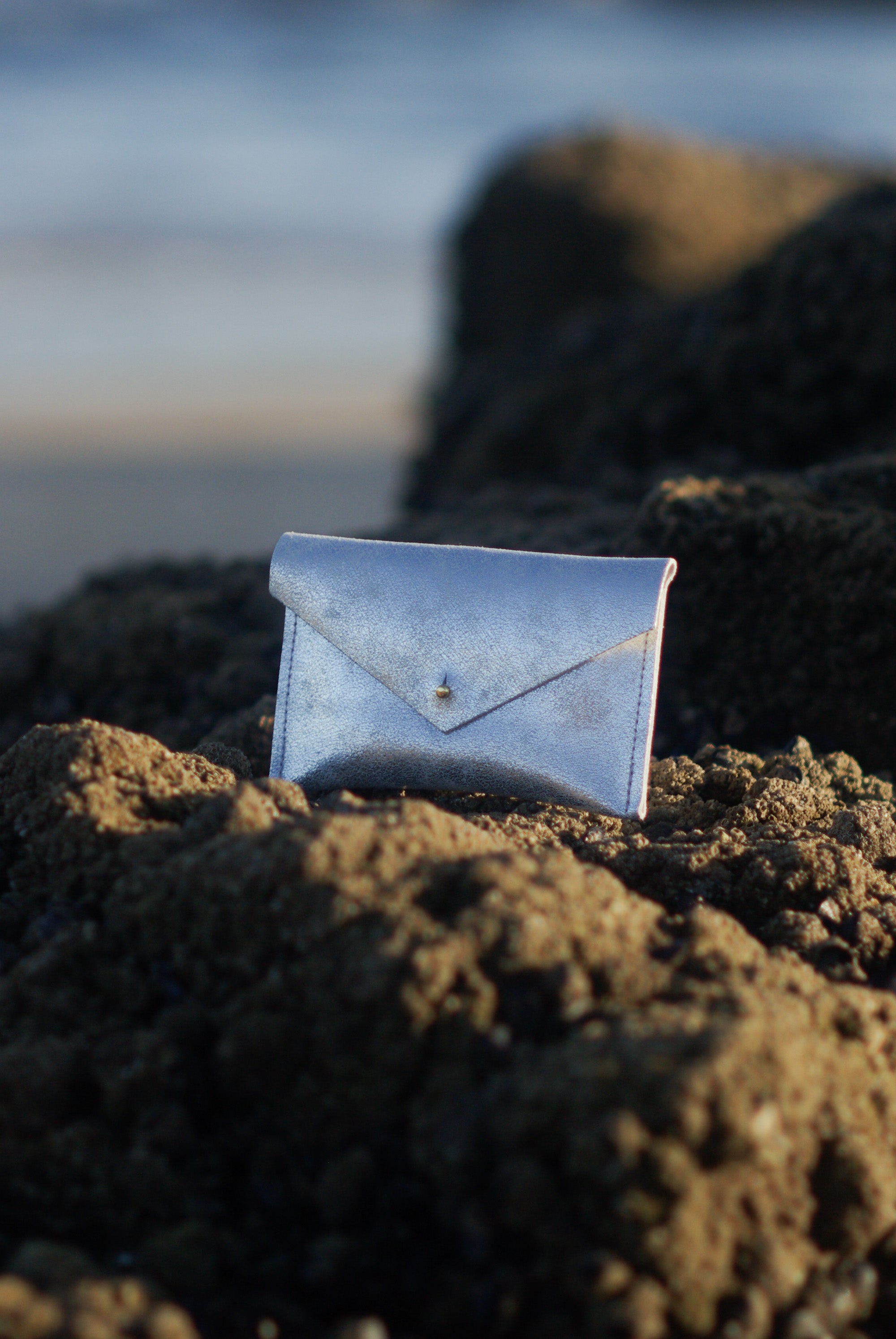Crafted from soft Italian leather, this compact envelope purse shines in enchanting shades of pale gold, gleaming silver, mermaid green, sapphire blue or shimmering bronze. Elevate your everyday style with a design that combines elegance and practicality.