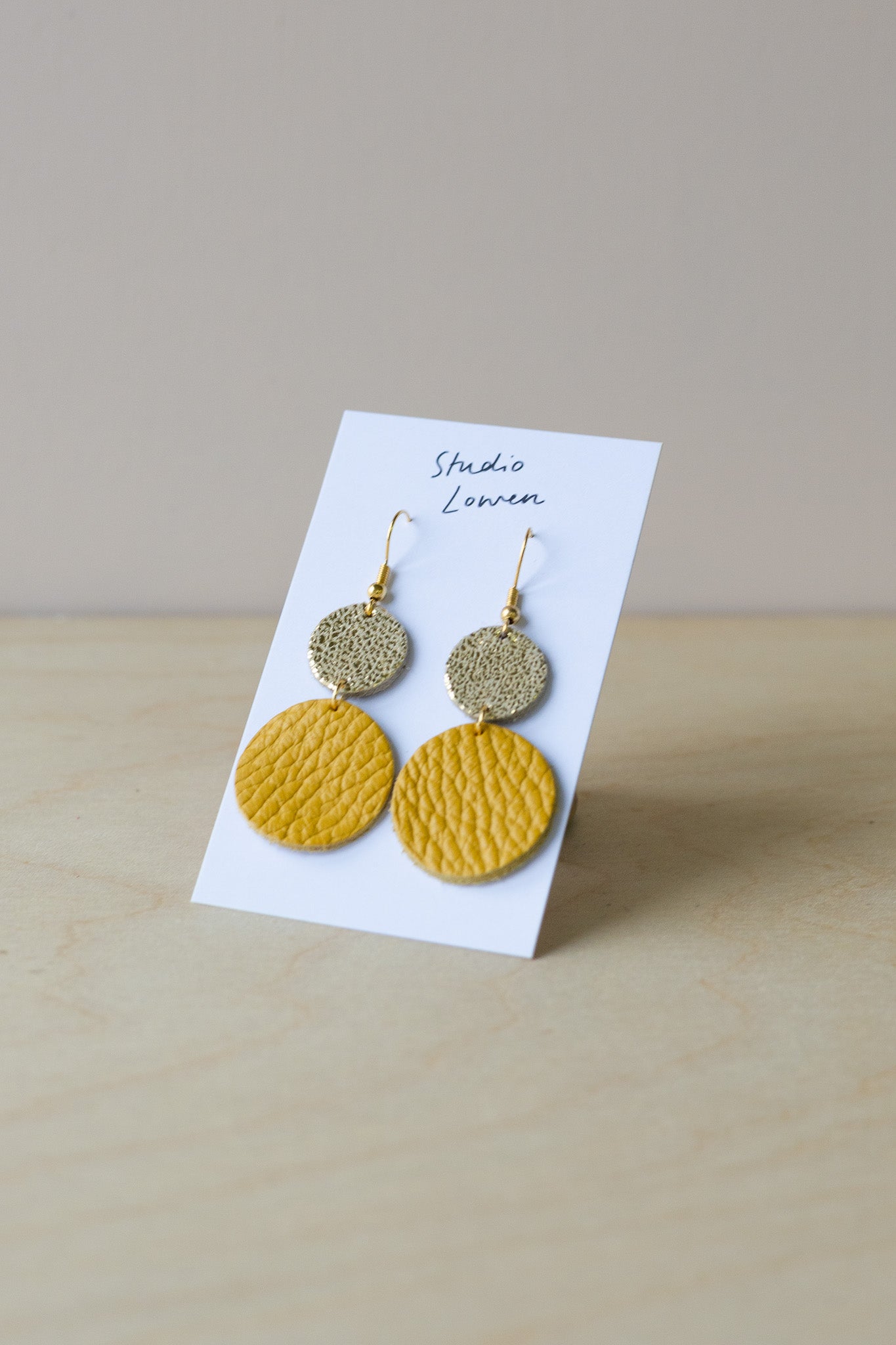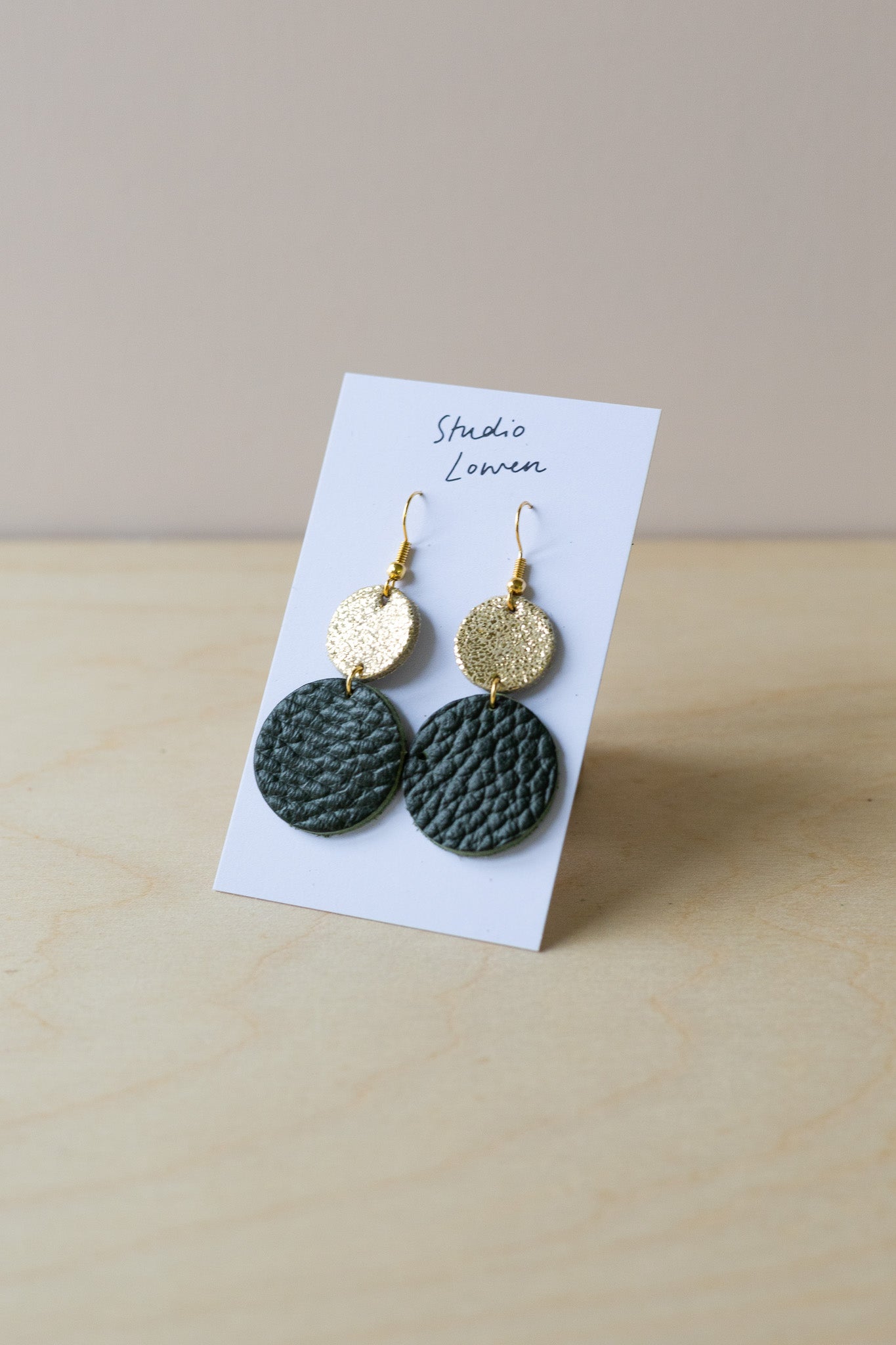Made from offcuts of our beautiful suedes and leathers, these have a "Shimmer Gold" circle shape at the top and then a choice of colours for the larger bottom circle, pick below for the colour of the bottom circle.