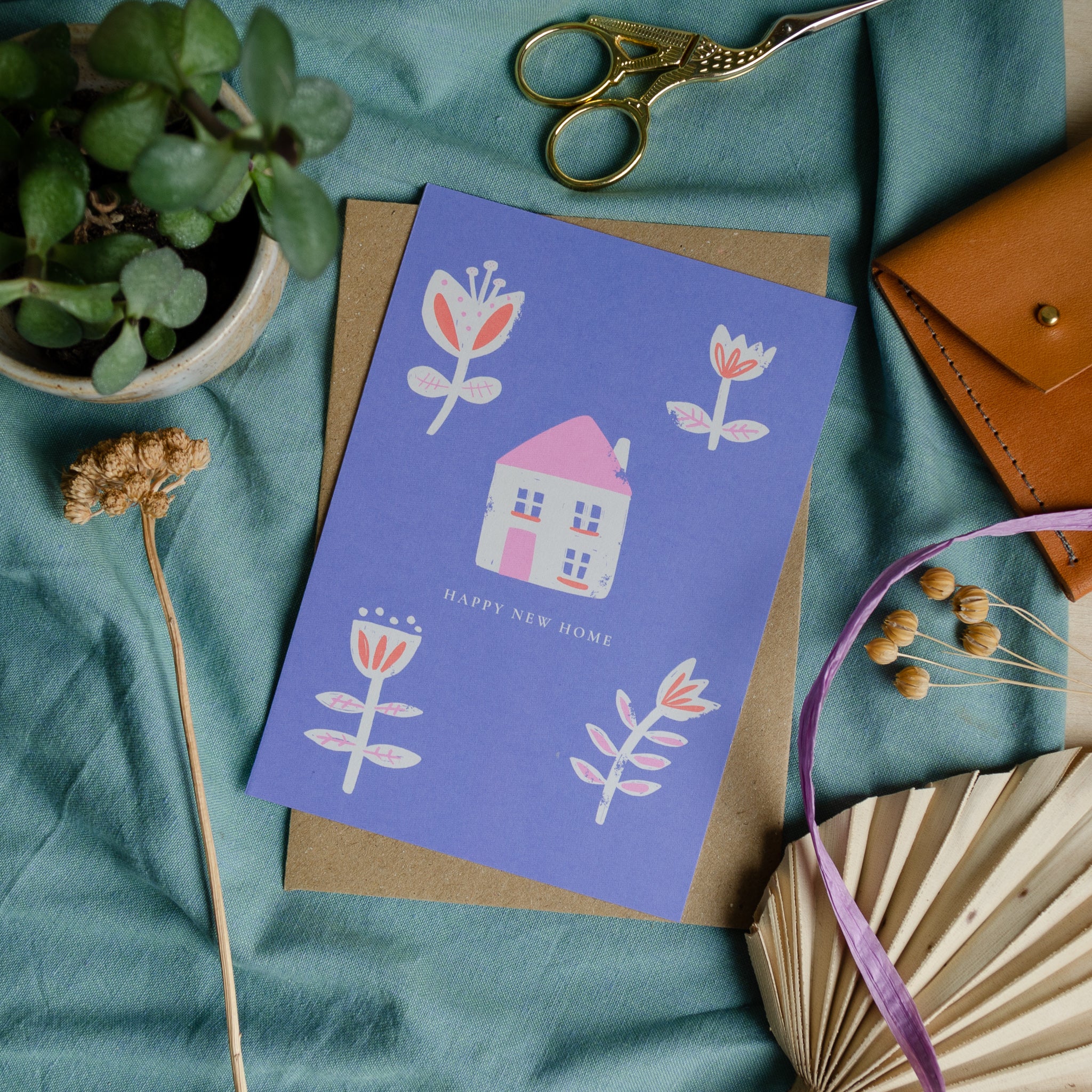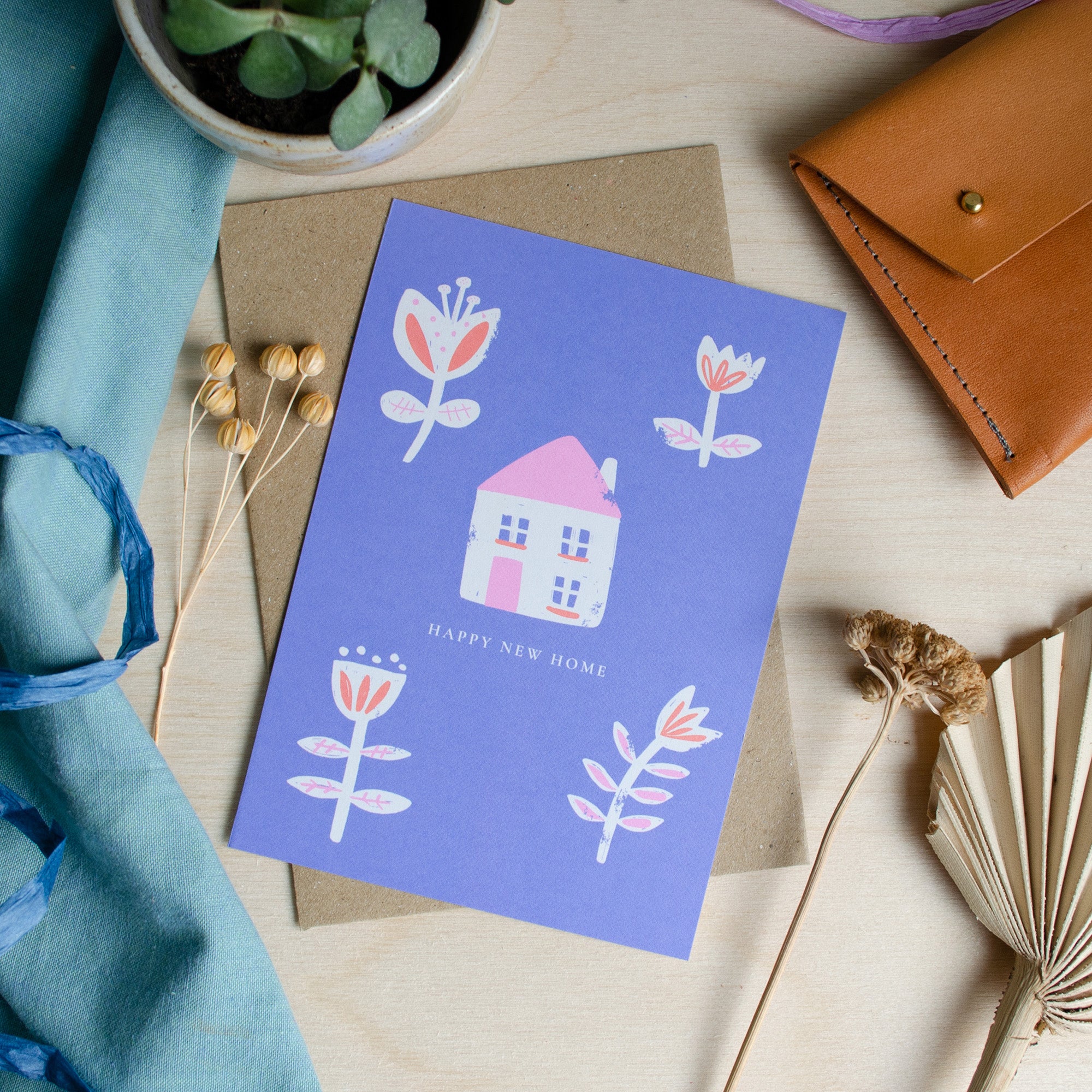 Cute illustrated house warming card for new homes, moving out and moving in!