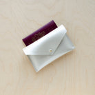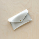 Our leather pouches are handmade in our studio in West Cornwall using high quality leather which we are proud to source locally from a supplier here in England. We cut out the pieces of leather for each pouch before sewing together by machine. They are finished with a minimalist stud fastening to close. Choose between gold or silver personalisation and hardware.