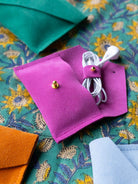 Each suede pouch is carefully crafted using high quality suede. Each one is finished with a minimalist stud to fasten and keep the contents safe. Choose from a silver or gold stud.